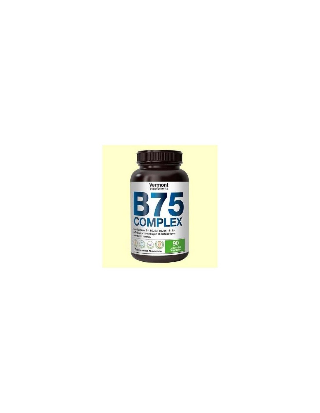 El B75 Complex 90Vcap. de Vermont Supplements es un suplemento vitamínico para adultos que contribuye al metabolismo energético y al funcionamiento del sistema nervioso gracias a su combinación de vitaminas B.