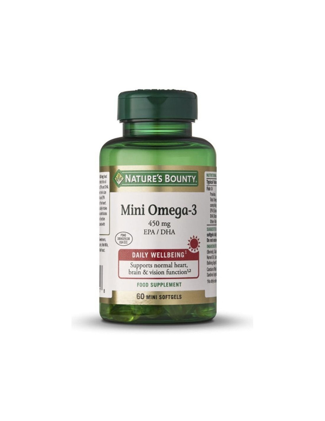 El Mini Omega 3 450Mg Epa/Dha 60Cap. de Natures Bounty es un suplemento diseñado para personas que buscan complementar su dieta con ácidos grasos esenciales. Es adecuado para quienes desean mantener un aporte constante de EPA y DHA en su rutina diaria.