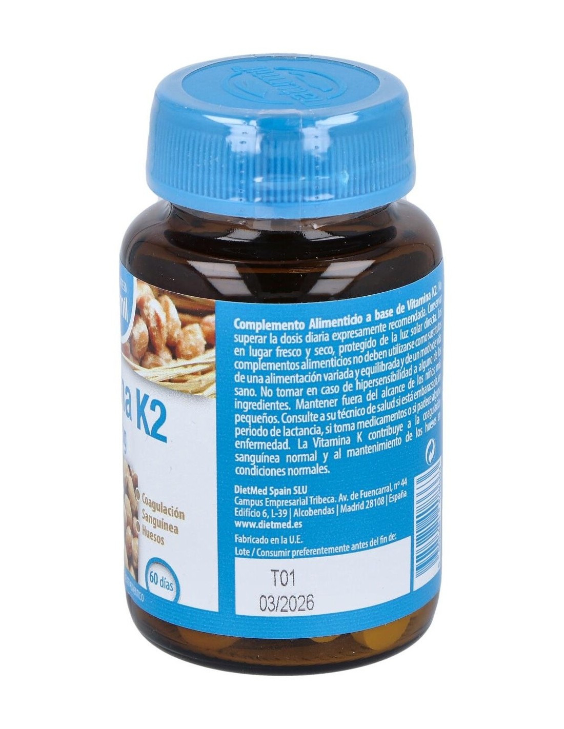 La Vitamina K2 60Comp. de Dietmed es un suplemento para adultos que contribuye al mantenimiento de huesos y la salud cardiovascular, gracias a su formulación con menaquinona-7 de alta biodisponibilidad.