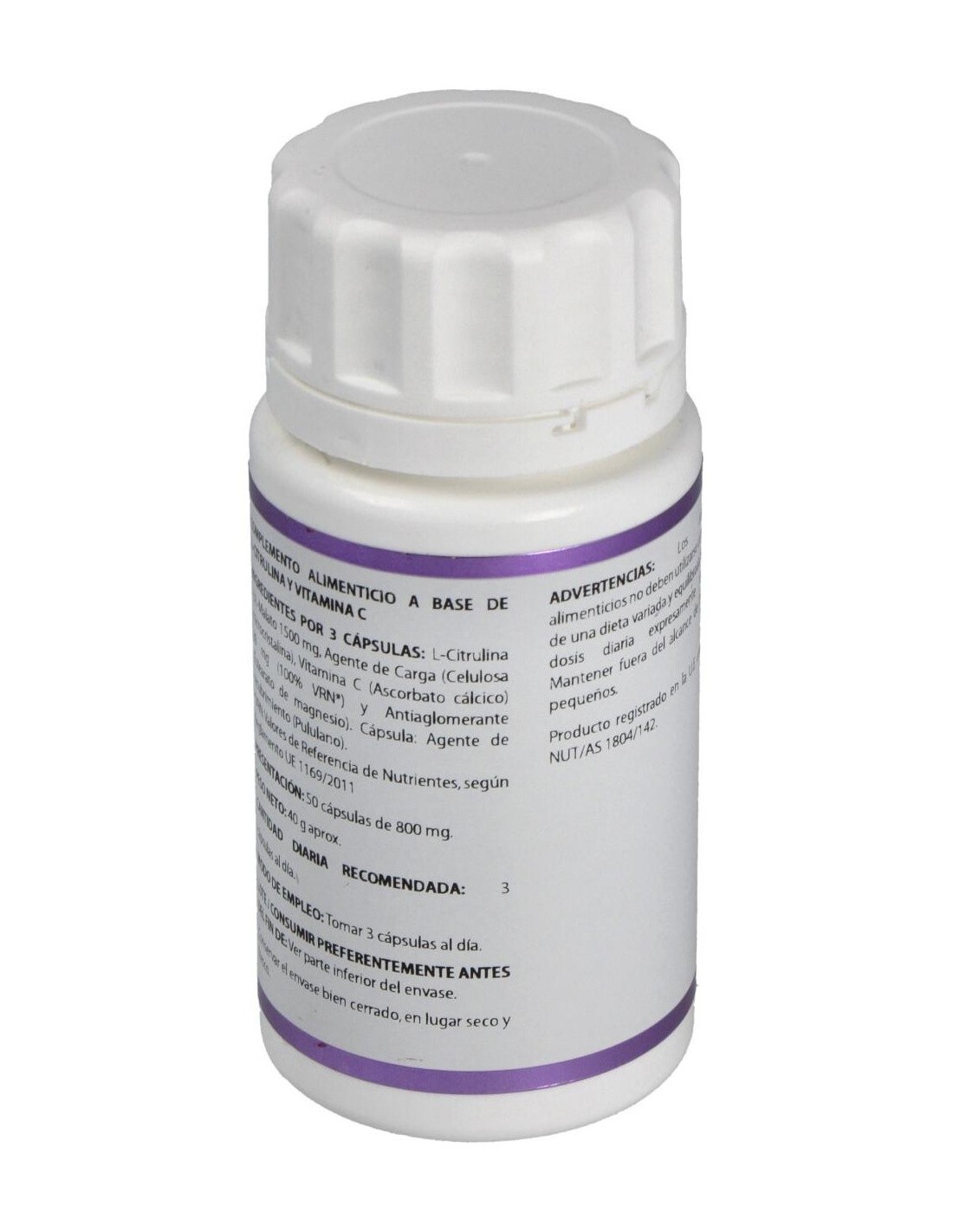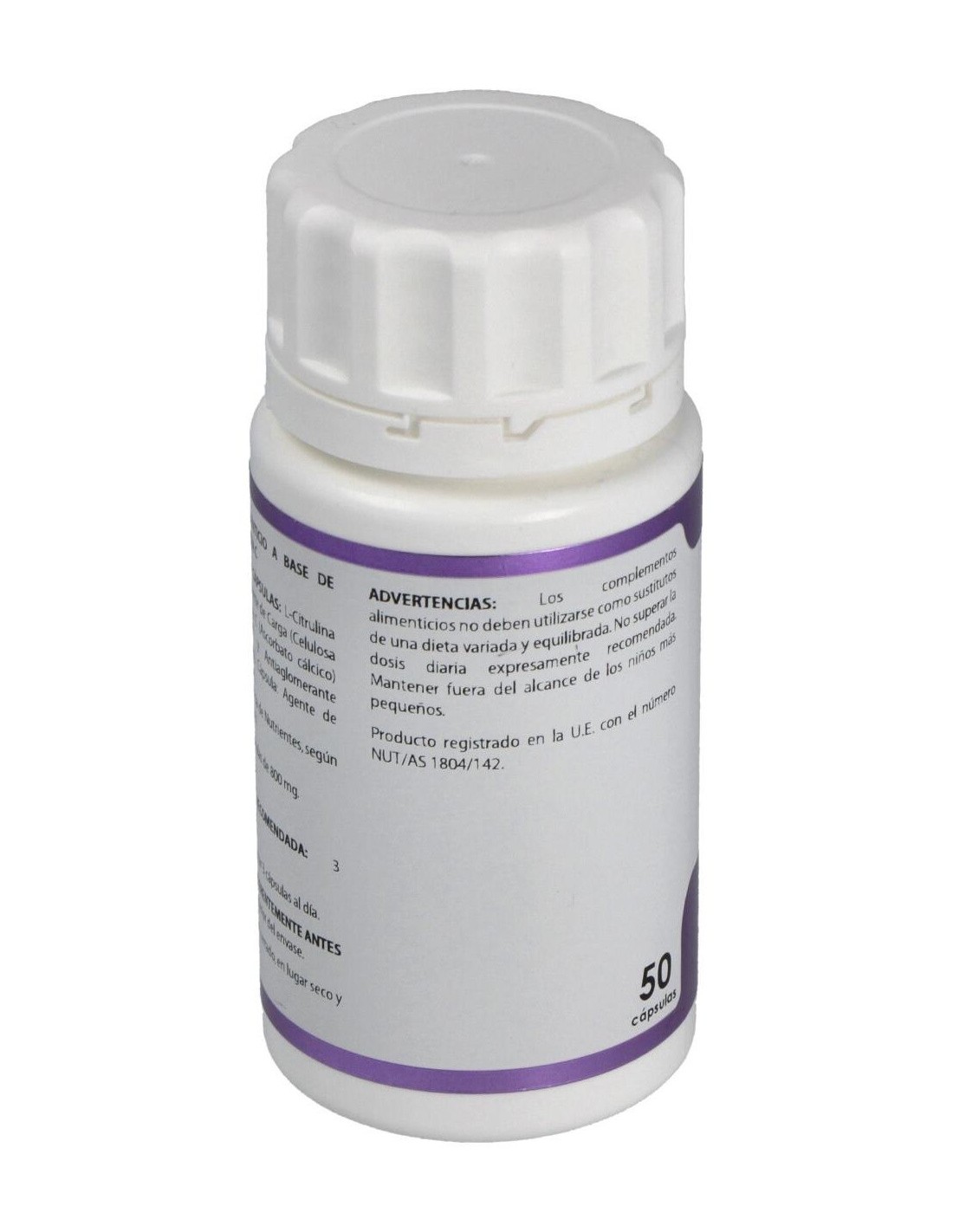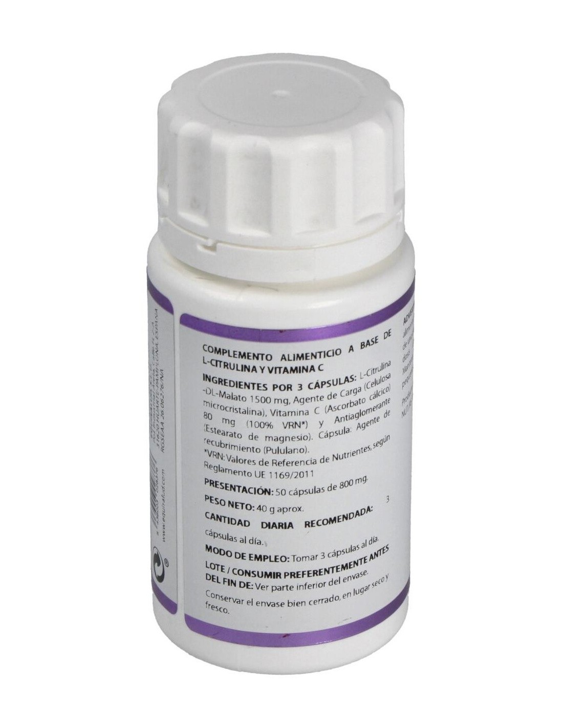 La citrulina malato también puede promover aumento de la producción de energía aeróbica, y que la suplementación con este aminoácido no sólo beneficia a los que buscan entrenamientos más intensos, sino también a los atletas de pruebas de larga duración como los maratonistas. Personas con artritis reumatoide o citrulinemia (ausencia de enzimas relacionadas con el ciclo de la urea) pueden tener una fuerte intolerancia al malato de citrulina. Composición por cápsula:500 mg de L-Citrulina. Modo de empleo:Tomar 3 cápsulas al día, preferentemente antes de las comidas. Presentación:Bote de 50 cápsulas.