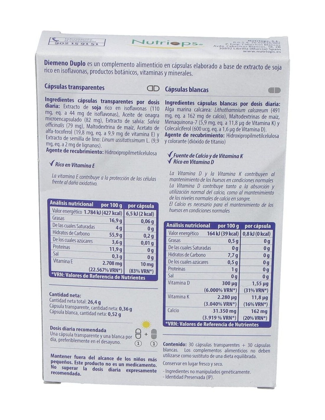 Diemeno Duplo - Cápsulas entéricas Ricas en Isoflavonas, con Calcio de Nutriops