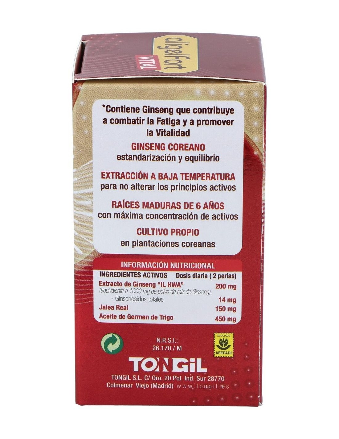 Complemento alimenticio a base de Ginseng Coreano IL HWA, Jalea Real y aceite de germen de trigo.