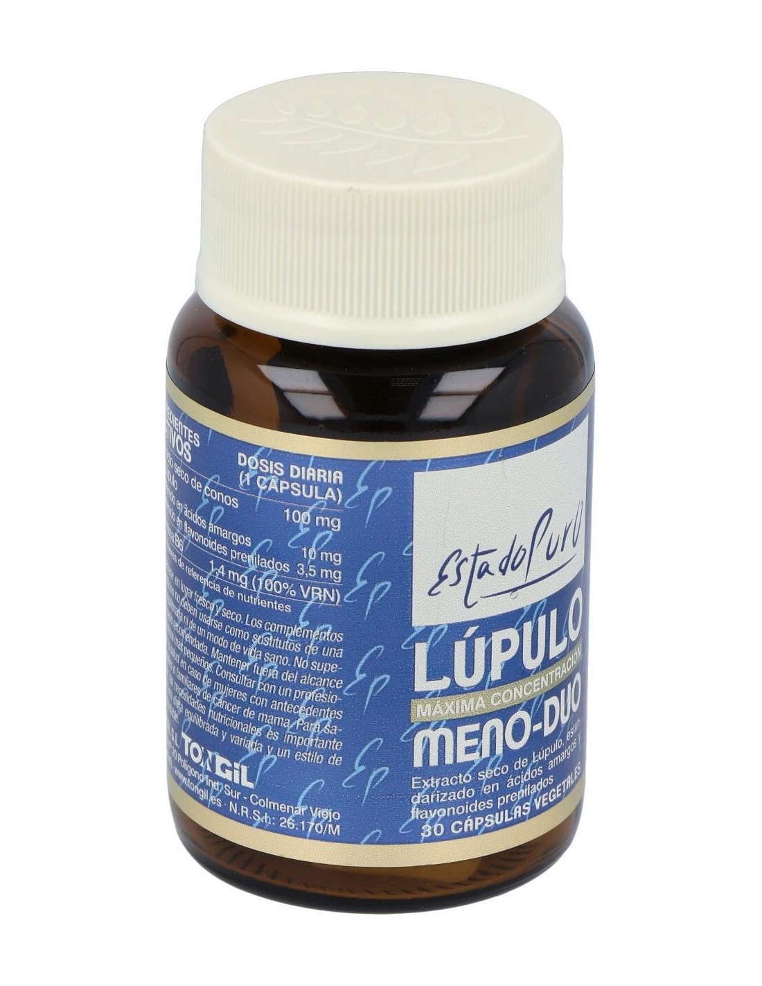 Lupulo Meno-Duo 30Cap. Estado Puro de Tongil es un complemento formulado para personas que buscan apoyar su bienestar femenino durante etapas específicas del ciclo natural. Está diseñado para quienes prefieren opciones basadas en ingredientes de origen vegetal y desean una alternativa que se integre fácilmente en su rutina diaria.