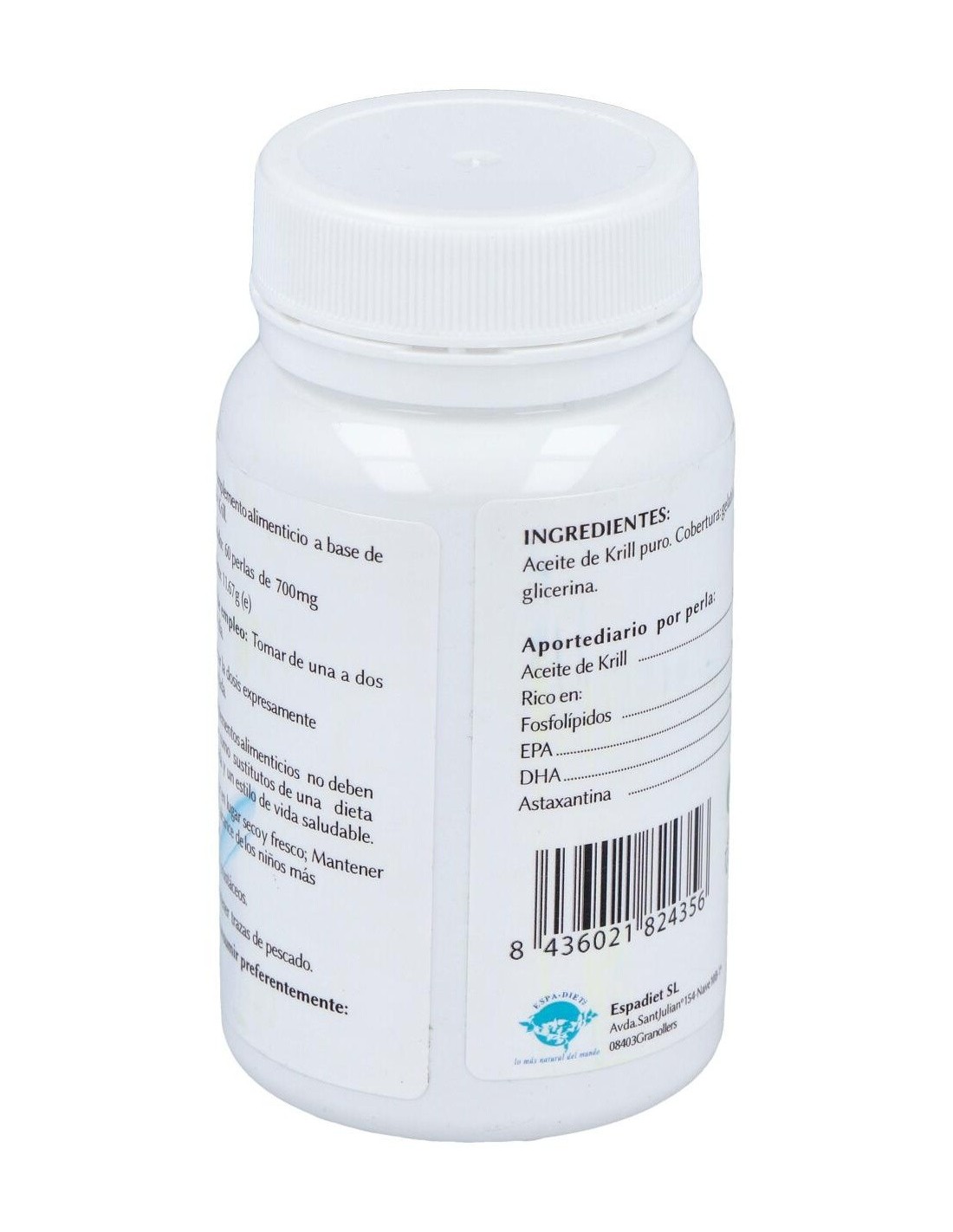 El Krill 500 Mg. 60Perlas de Espadiet es un suplemento nutricional para adultos que aporta ácidos grasos omega-3, facilitando el mantenimiento del bienestar general mediante su fórmula concentrada en aceite de krill.