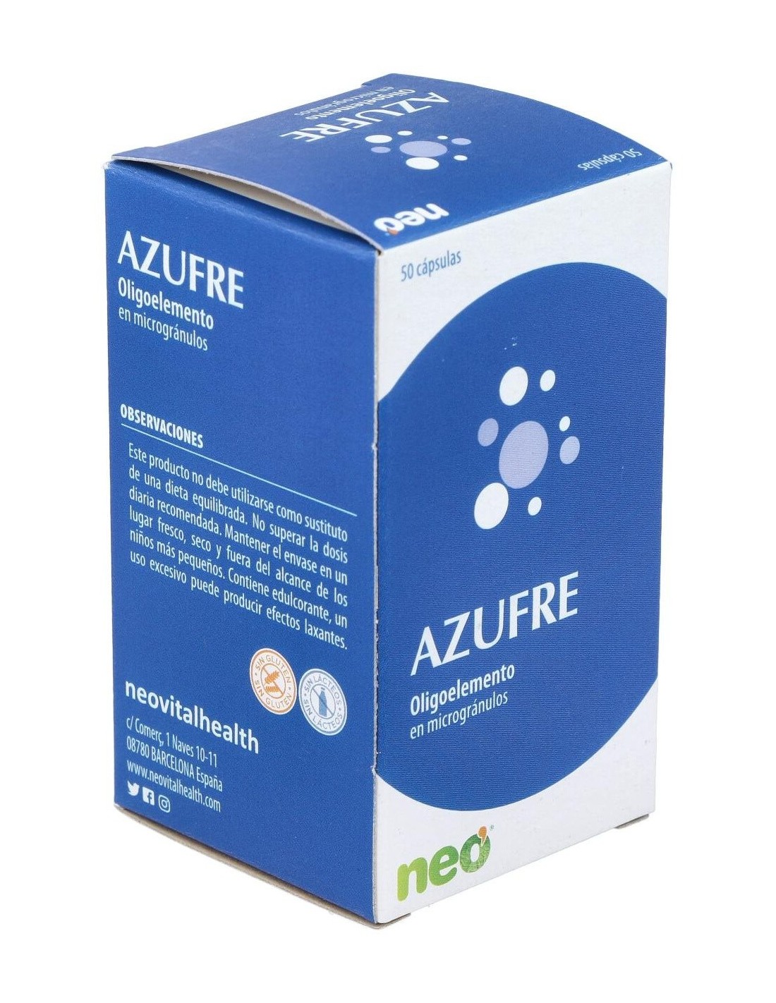 Azufre Microgranulos Neo 50Cap. de Neo es un suplemento diseñado para quienes buscan una opción práctica y dosificada para incorporar azufre en su rutina diaria. Ideal para usuarios que valoran la calidad y la facilidad de uso en productos de cuidado personal y bienestar.