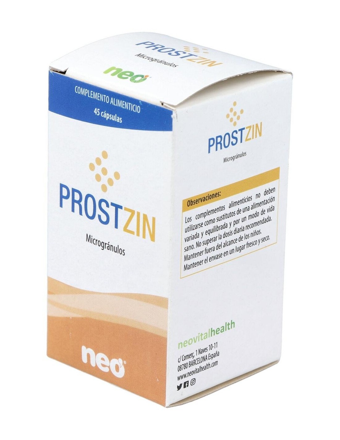 El producto está elaborado con ingredientes de calidad, seleccionados para ofrecer una composición estable y segura. Su diseño en cápsulas permite una absorción adecuada y una integración sencilla en la rutina diaria. Prostzin Neo 45Cap. de Neo es adecuado para quienes buscan un complemento que apoye su estilo de vida saludable.