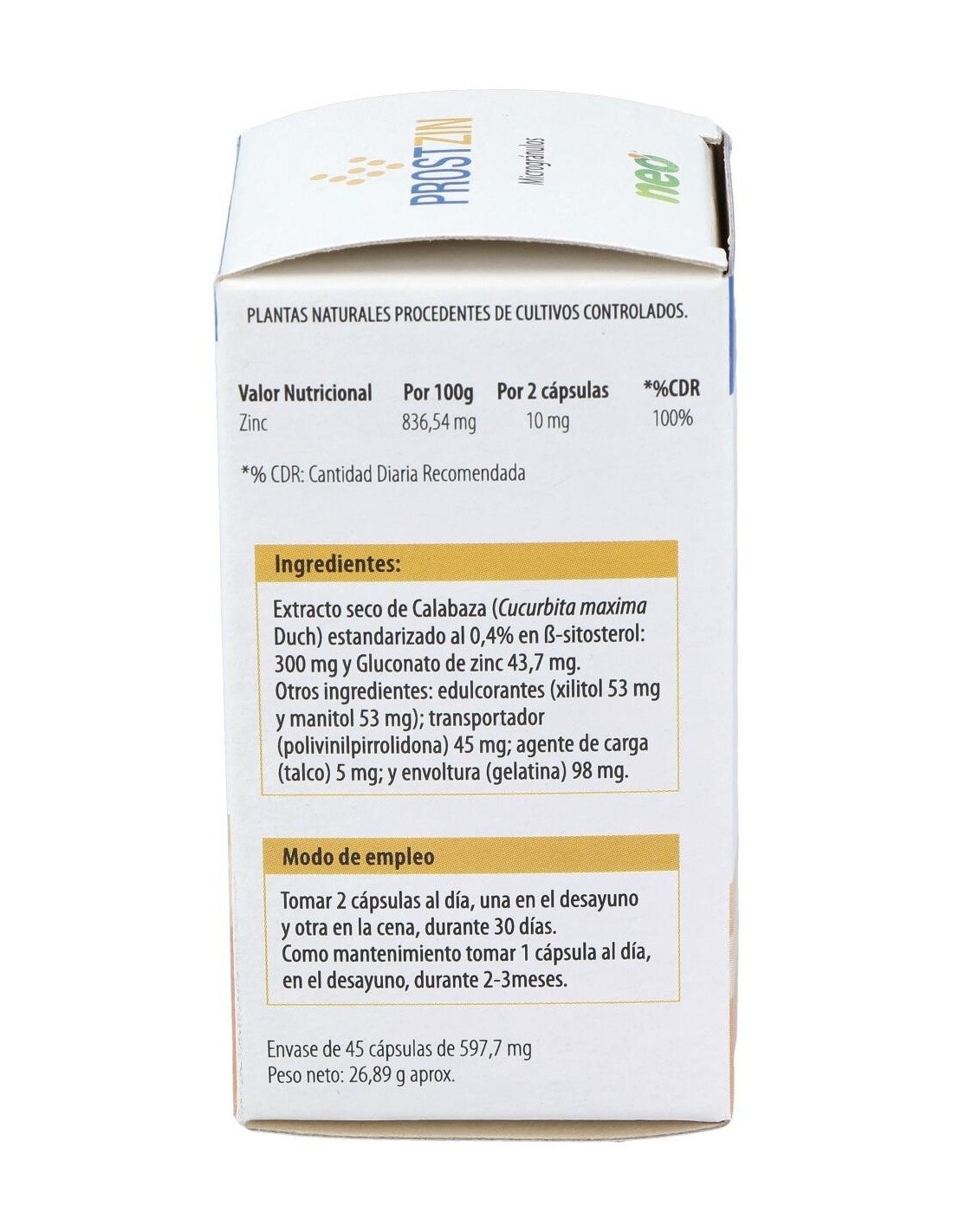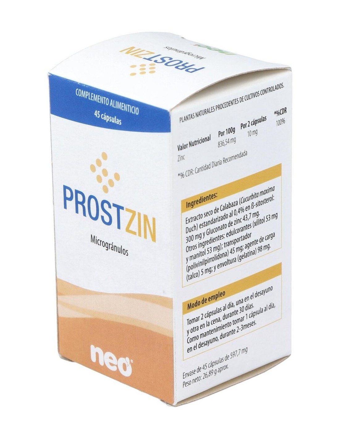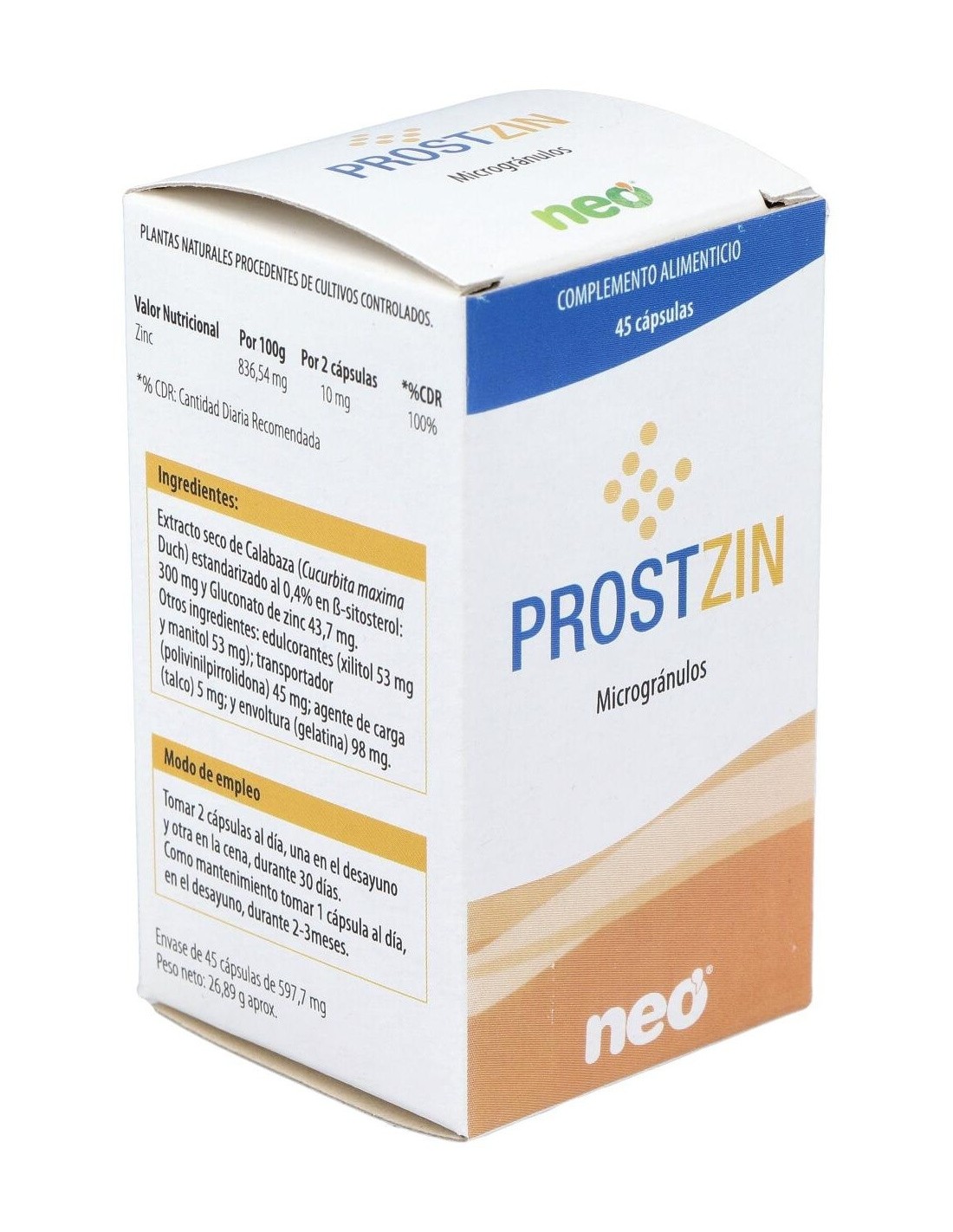 Prostzin Neo 45Cap. de Neo es un suplemento diseñado para personas que buscan apoyar su bienestar diario mediante ingredientes seleccionados cuidadosamente. Su formulación está pensada para integrarse en rutinas de cuidado personal que buscan un complemento natural.