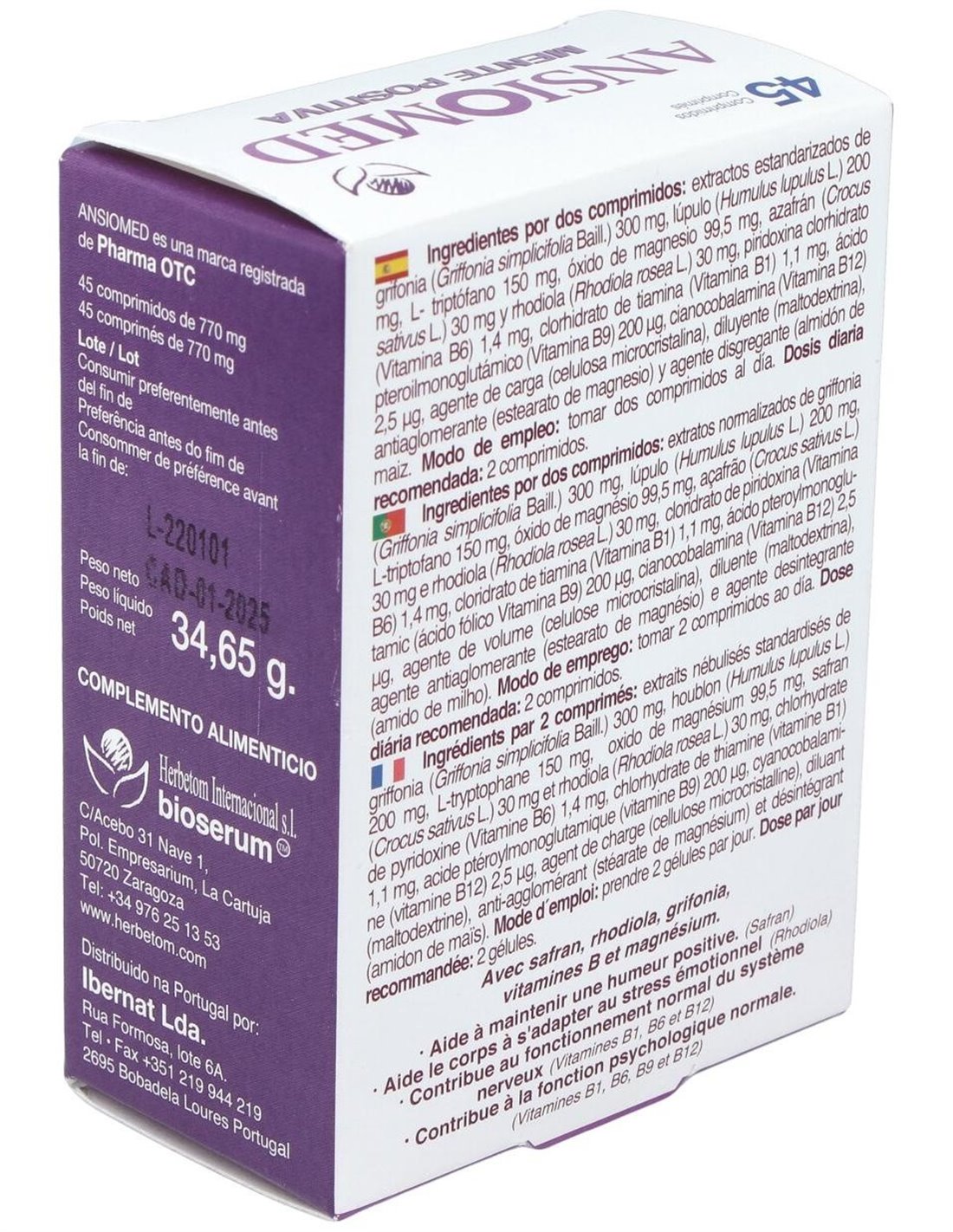 Ansiomed Mente Positiva 45 Comprimidos Bioserum