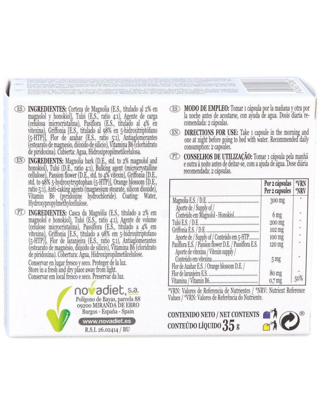 - Fórmula equilibrada que contribuye a mantener un estado de ánimo estable y favorecer la relajación.