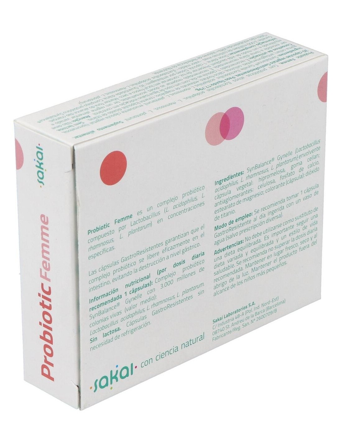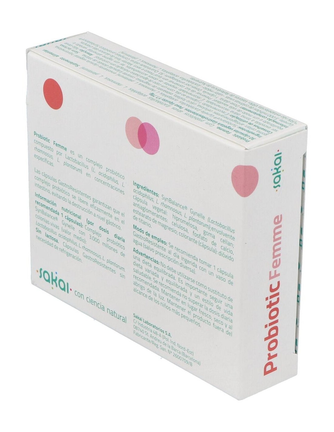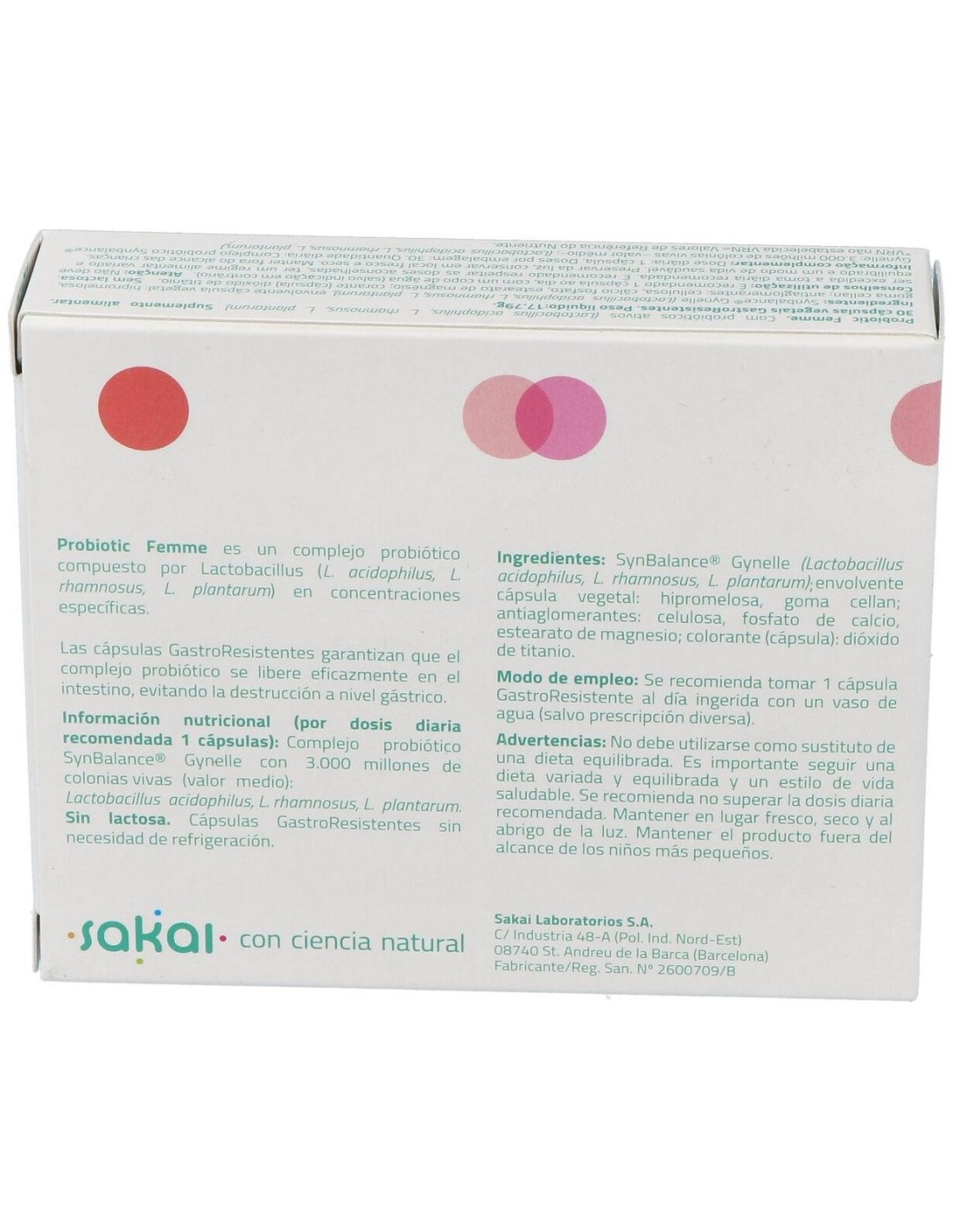Probiotic Femme 30Cap. de Sakai es un suplemento diseñado para mujeres que buscan apoyar su bienestar digestivo y equilibrio intestinal a través de una fórmula específica. Este producto está pensado para quienes desean complementar su rutina diaria con probióticos que contribuyen a mantener una flora intestinal saludable.