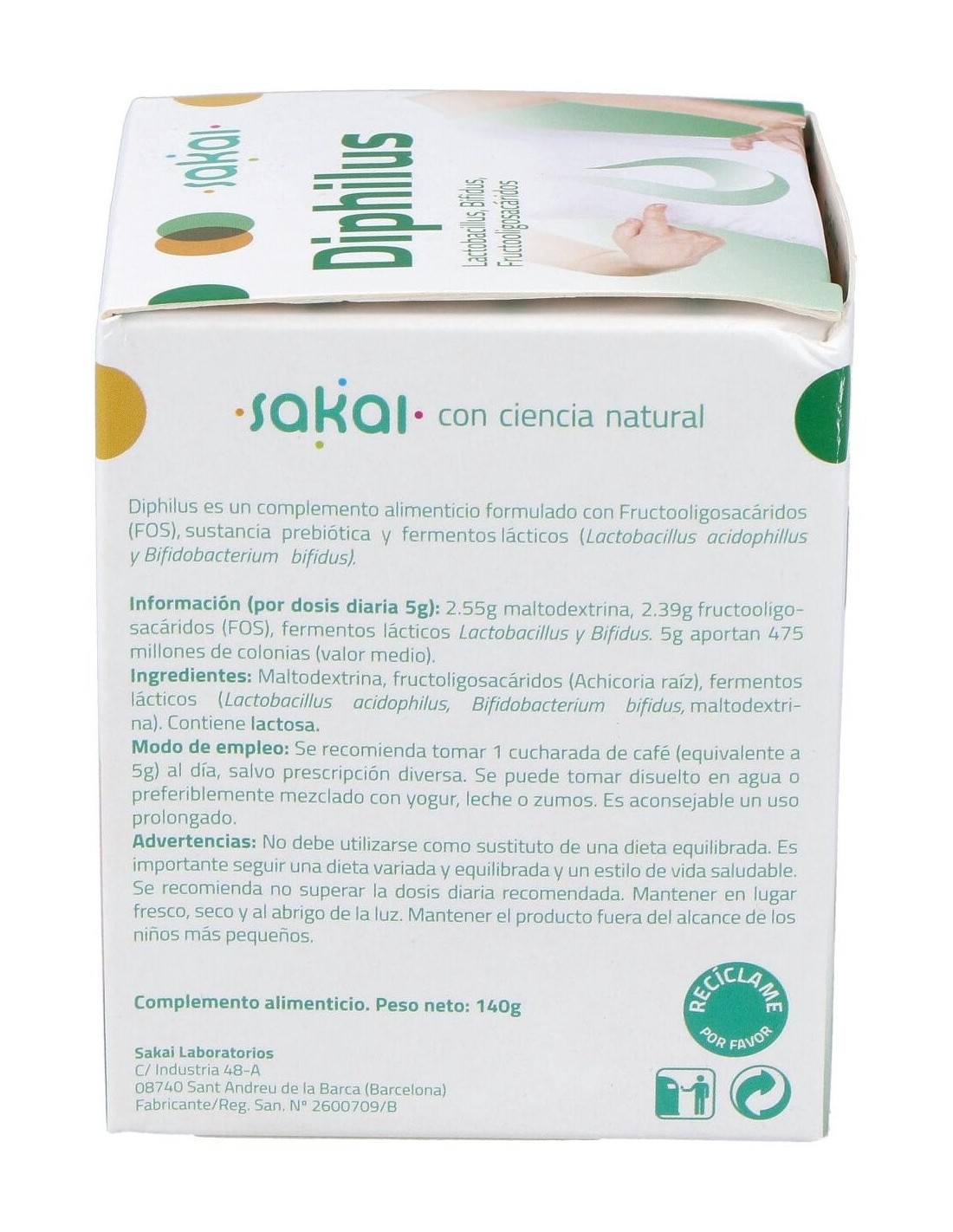 Diphillus Polvo 140Gr. de Sakai es un suplemento en polvo diseñado para personas que buscan apoyar su bienestar diario mediante ingredientes seleccionados cuidadosamente. Su formulación está pensada para integrarse fácilmente en la rutina diaria, aportando una opción práctica y versátil.
