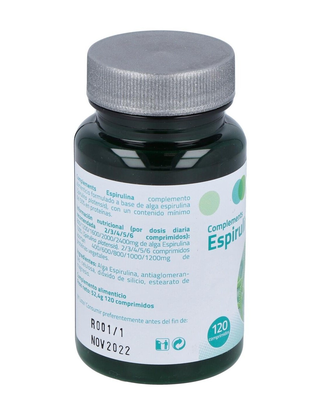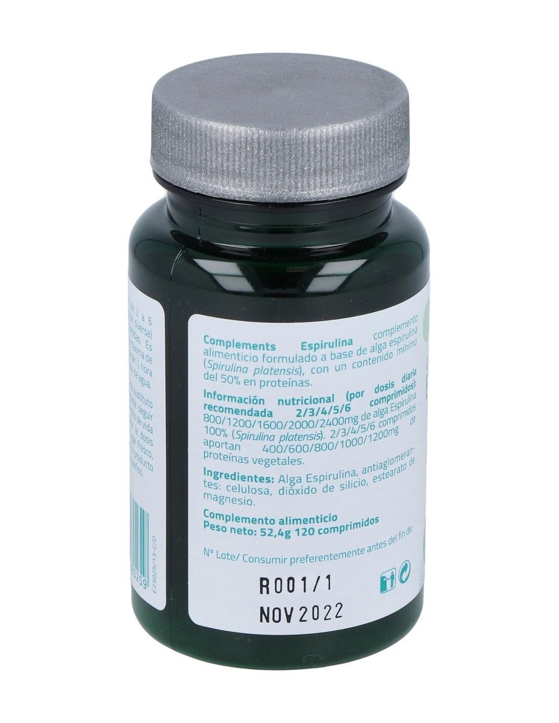 - Contiene 120 comprimidos de espirulina, facilitando una dosificación práctica y constante.