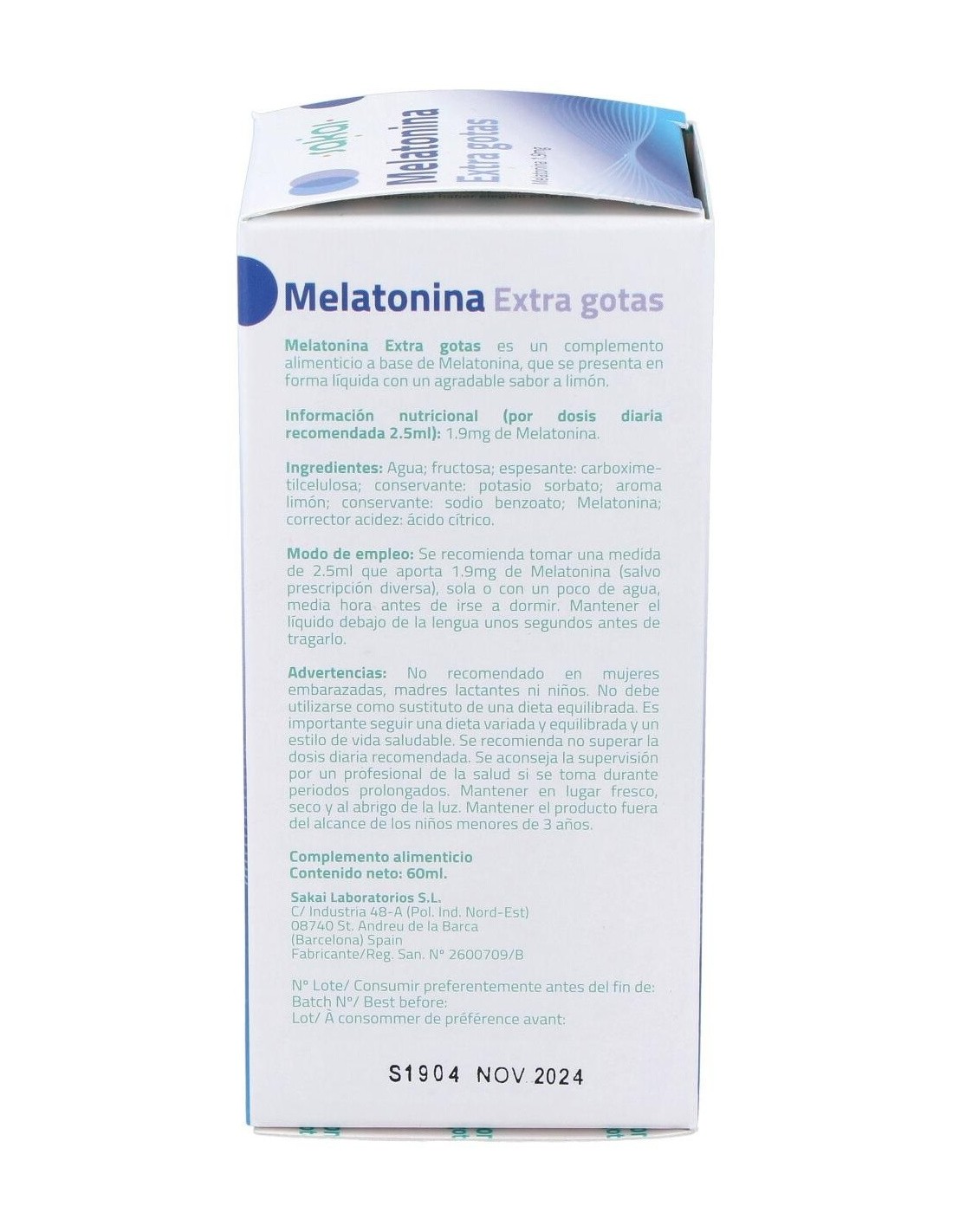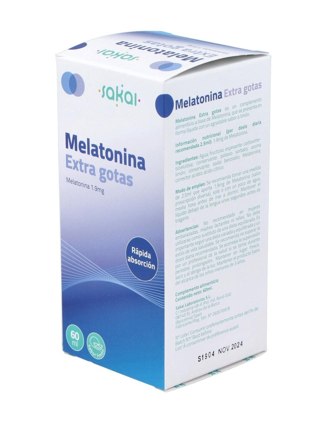 Melatonina Extra Gotas 60Ml. de Sakai ofrece una forma práctica y controlada de complementar los hábitos de descanso, con una presentación que facilita su incorporación en la rutina diaria.