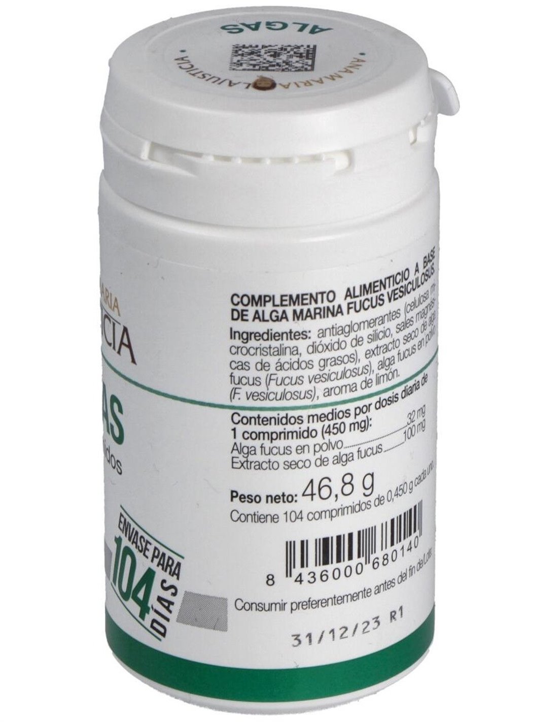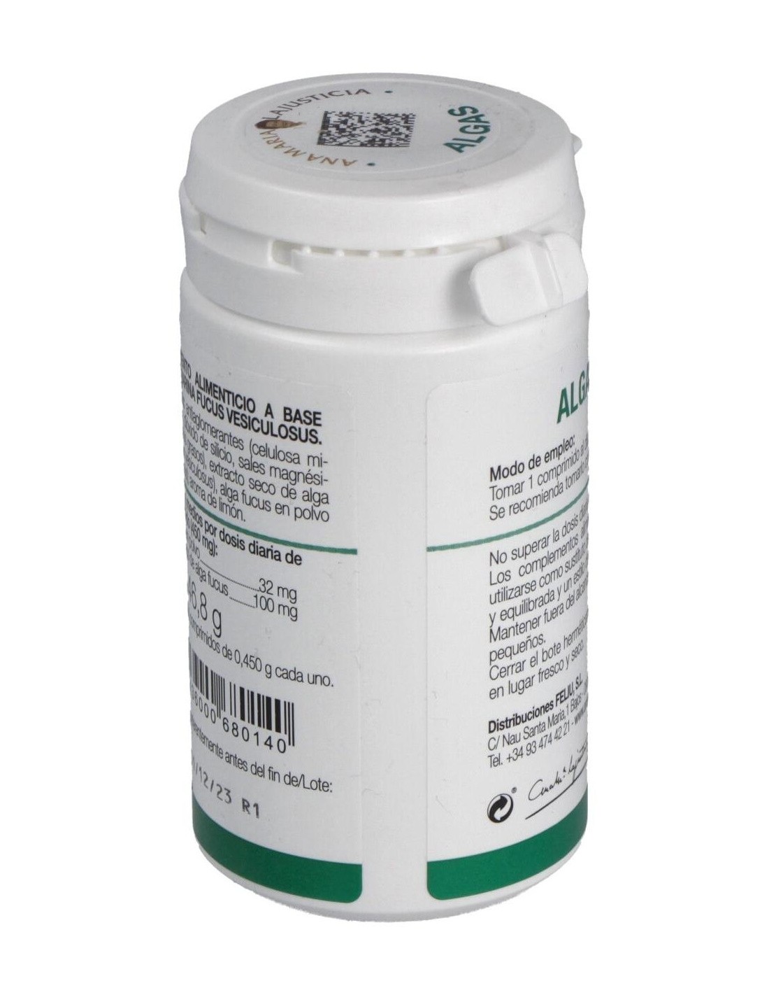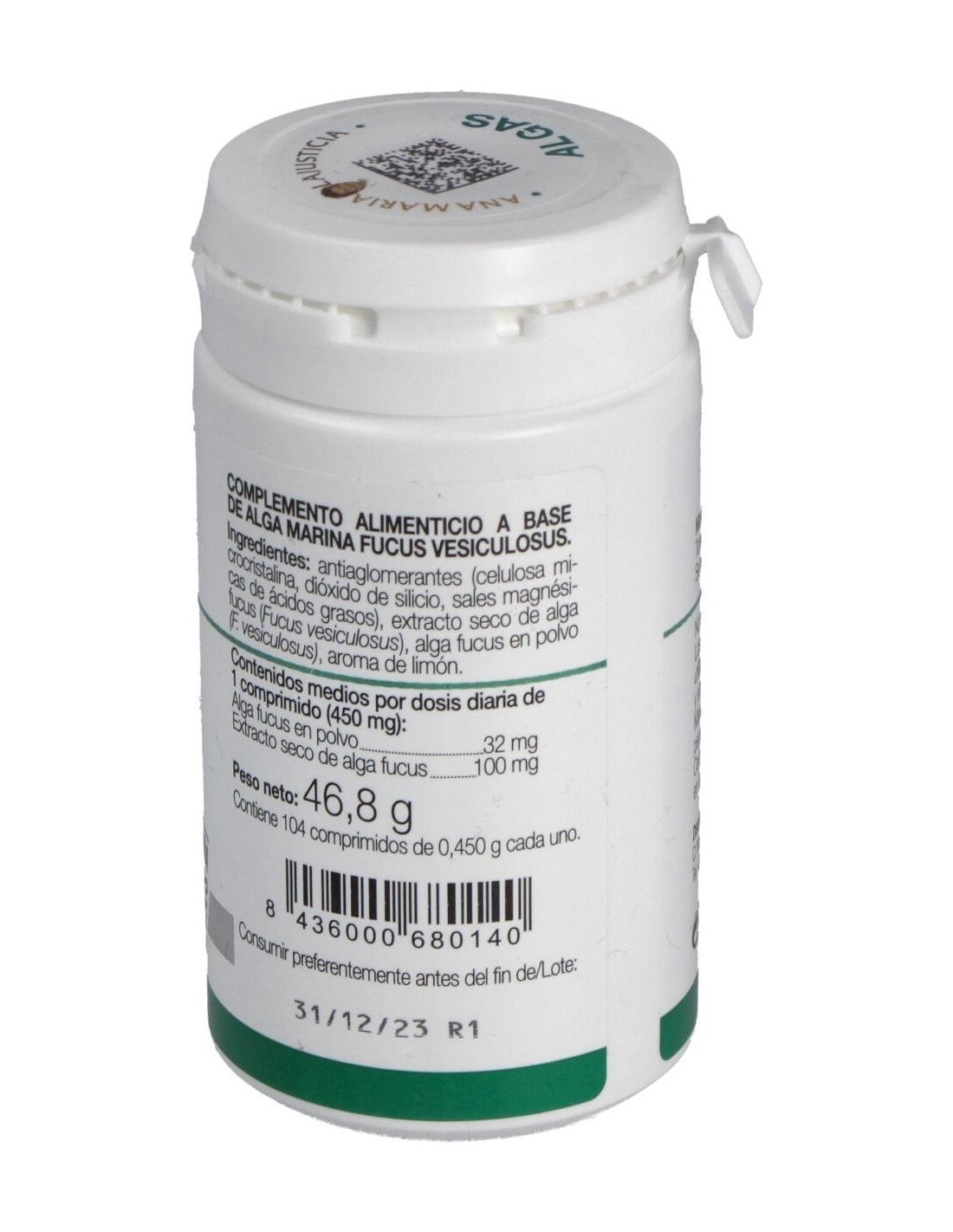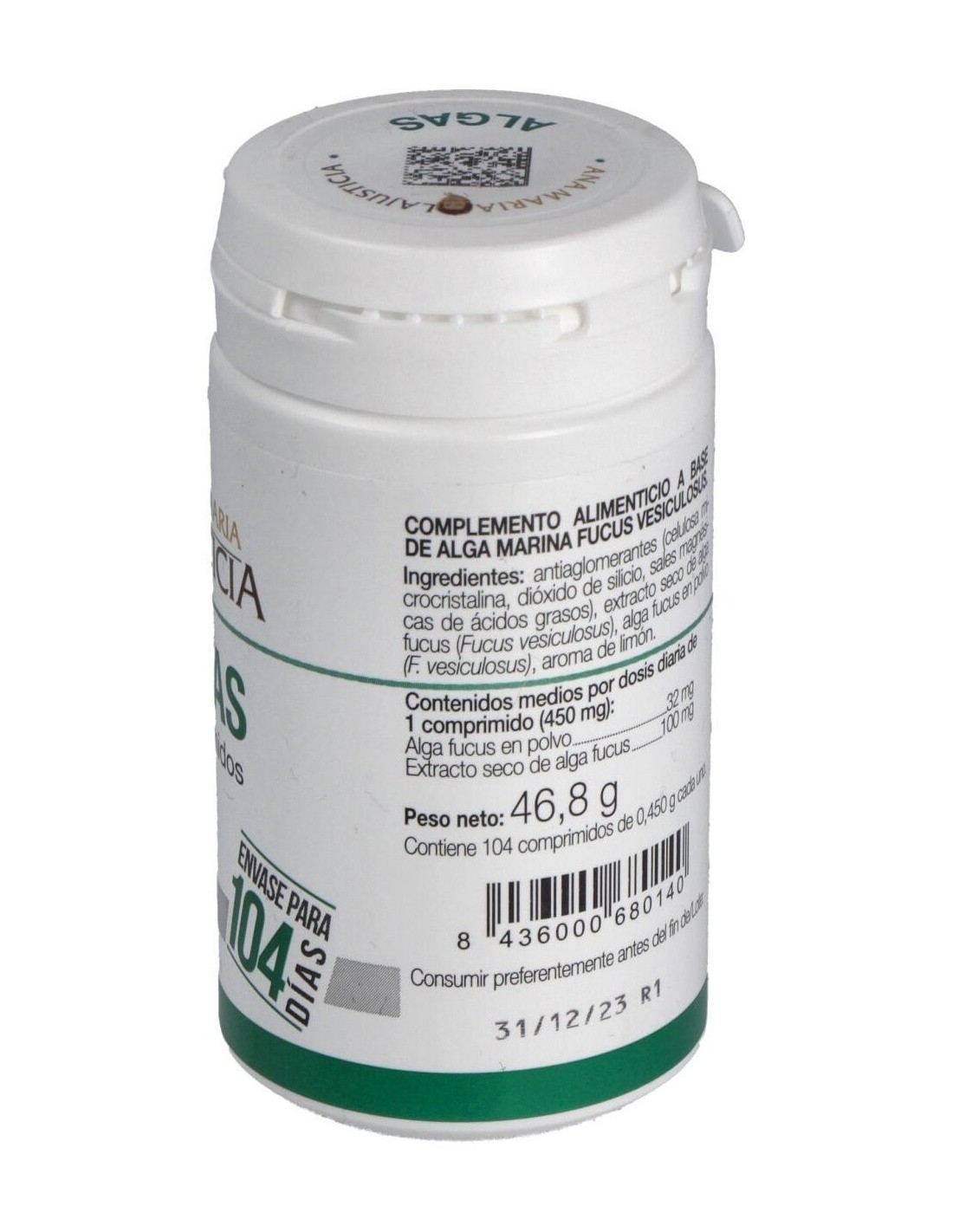 Algas Fucus polvo 250 mg, extracto seco fucus 100 mg.