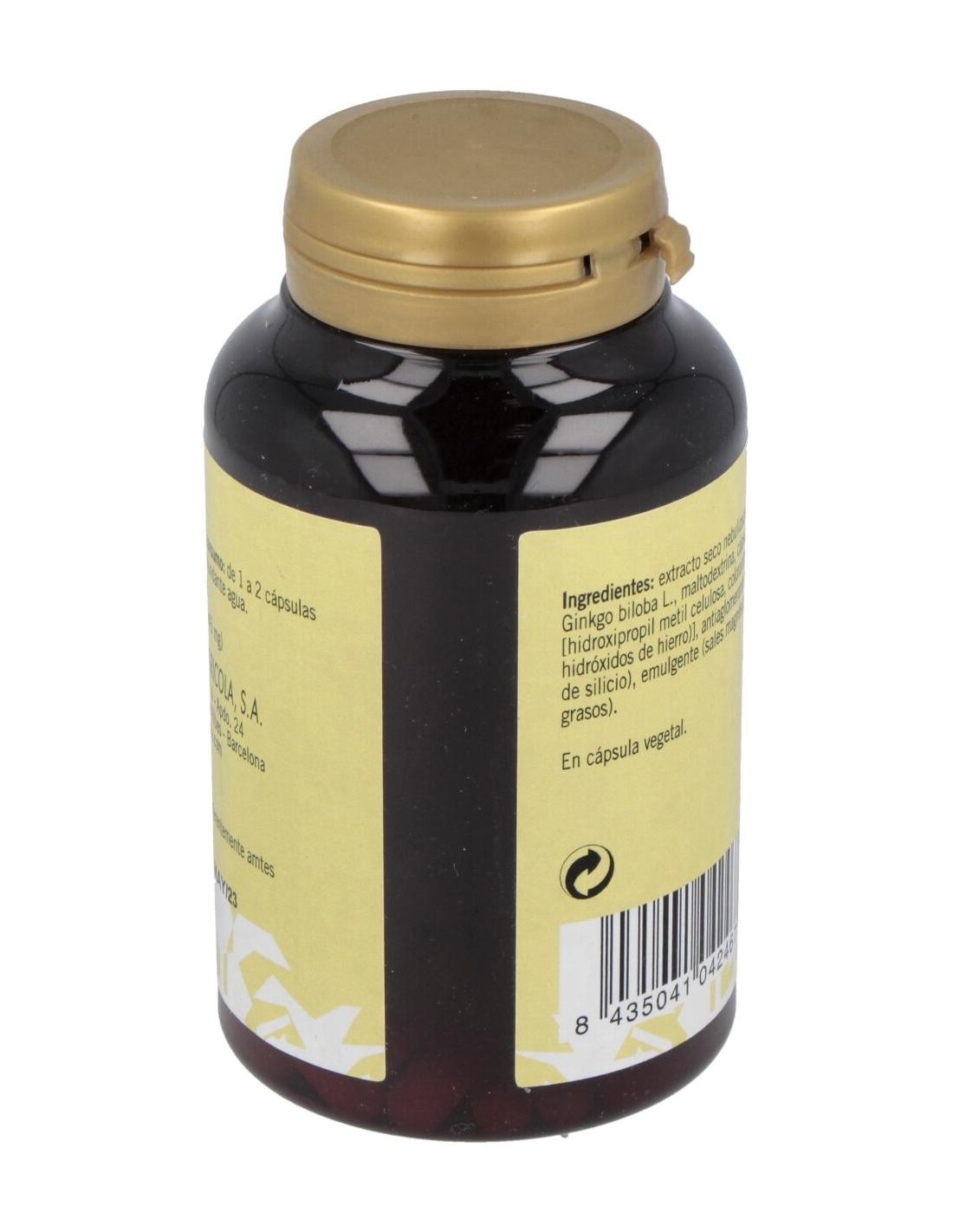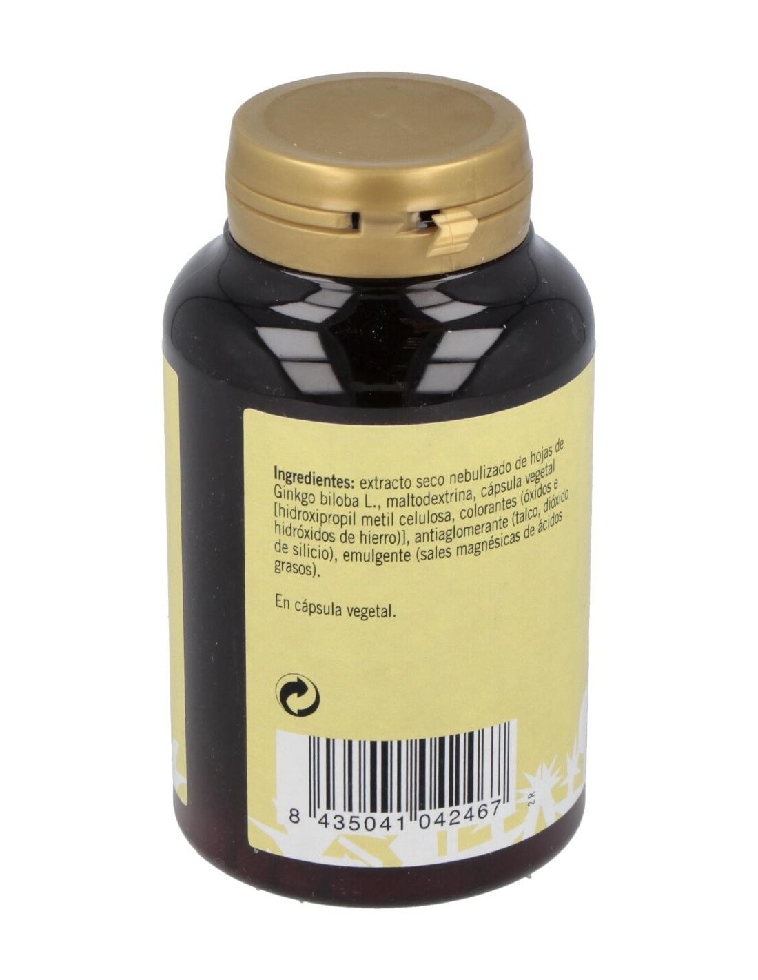 El Ginkgo (Ginkgo biloba L.), es un árbol procedente del este asiático (China y Japón), se usan sus hojas ya que son ricas en compuestos flavónicos y le confieren propiedades a nivel de vasodilatación cerebral y periférica, además de tener propiedades diuréticas y antihemorroidales.El Ginkgo es muy empleado en geriatría para combatir síntomas funcionales de insuficiencia circulatoria cerebral: se ha comprobado que aumenta la velocidad de procesamiento de la información y de la memoria. También es usada, aunque en menor grado, para el tratamiento de varices y de la circulación capilar. El Gingko se clasifica como planta medicinal que mejora las funciones cognoscitivas.Composición activa por cápsula:300 mg de extracto de ginkgo.Ingredientes:Extracto de hojas de Ginkgo (Ginkgo biloba L.), cápsula vegetal [espesante (hidroxipropil metil celulosa), colorantes (óxidos e hidróxidos de hierro)], maltodextrima, emulgente (sales magnésicas de ácidos grasos), antiaglomerante (dióxido de silicio). En cápsula vegetal.Modo de empleo:Tomar 1 cápsula al día con el desayuno.Presentación:Envase de 120 cápsulas.Recomendaciones y advertencias:No contiene lactosa ni gluten.
