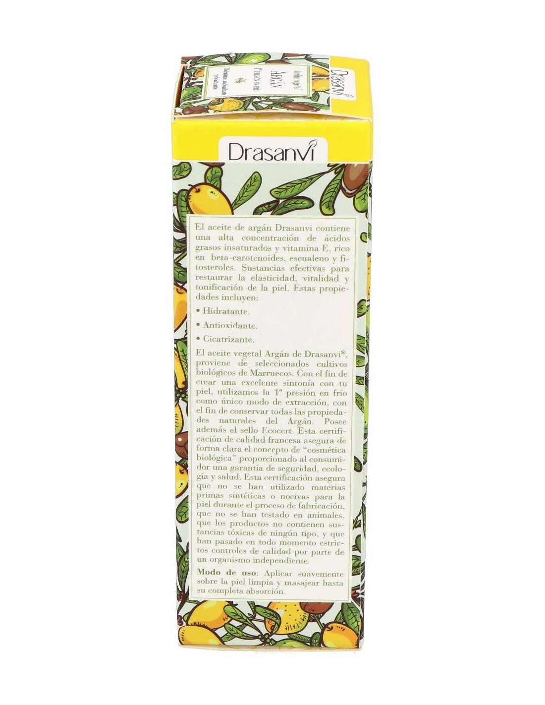 El aceite vegetal Argán de Drasanvi, proviene de seleccionados cultivos biológicos de Marruecos, donde se le conoce como oro líquido. Con el fin de crear una excelente sintonía con tu piel, utilizamos la 1ª presión en frío como único modo de extracción, con el fin de conservar todas las propiedades naturales del Argán. El aceite vegetal de Drasanvi, posee el sello Ecocert. Esta certificación de calidad francesa asegura de forma clara el concepto de cosmética biológica proporcionado al consumidor una garantía de seguridad, ecología y salud. Esta certificación asegura que no se han utilizado materias primas sintéticas o nocivas para la piel durante el proceso de fabricación, que no se han testado en animales, que los productos no contienen sustancias tóxicas de ningún tipo, y que han pasado en todo momento estrictos controles de calidad por parte de un organismo independiente. El aceite de argán Drasanvi contiene una alta concentración de ácidos grasos insaturados y vitamina E, rico en beta-carotenoides, escualeno y fitosteroles. Sustancias efectivas para restaurar la elasticidad, vitalidad y tonificación de la piel. Estas propiedades incluyen: