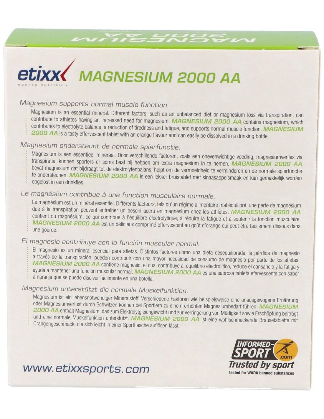 Eitxx Magnesium 2000 AA es un comprimido efervescente con sabor a naranja formulado con magnesio. Con Eitxx Magnesium 2000 AA se favorece la función muscular normal.