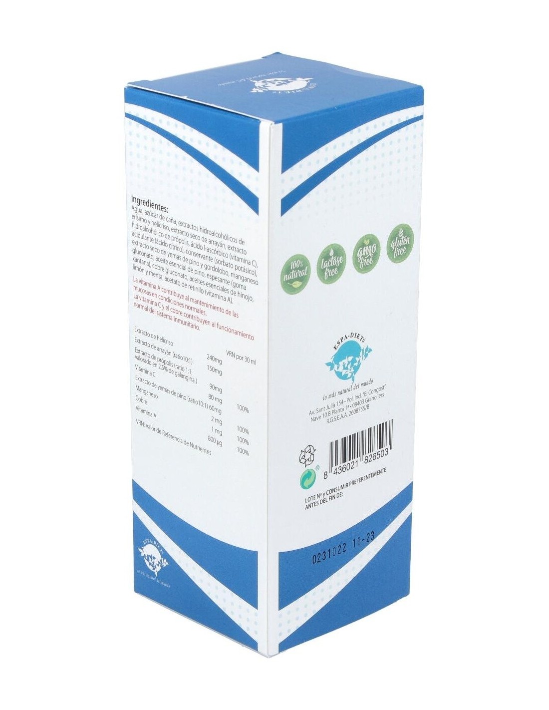 El jarabe está elaborado con ingredientes de origen vegetal, seleccionados para ofrecer una fórmula estable y homogénea. Su textura líquida facilita la absorción y el consumo, adaptándose a diferentes necesidades y estilos de vida.