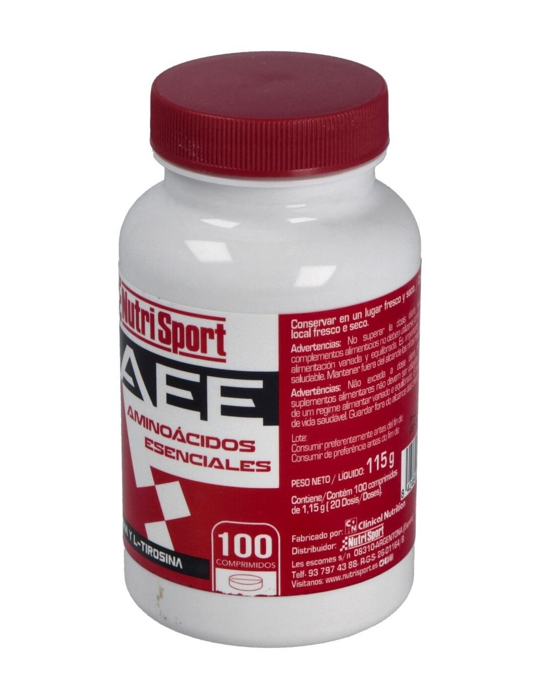 El Aminoacidos Esenc.1Gr Aaee 100Comp de Nutrisport es un suplemento para deportistas que aporta aminoácidos esenciales para apoyar la recuperación muscular y el mantenimiento del rendimiento durante el entrenamiento.