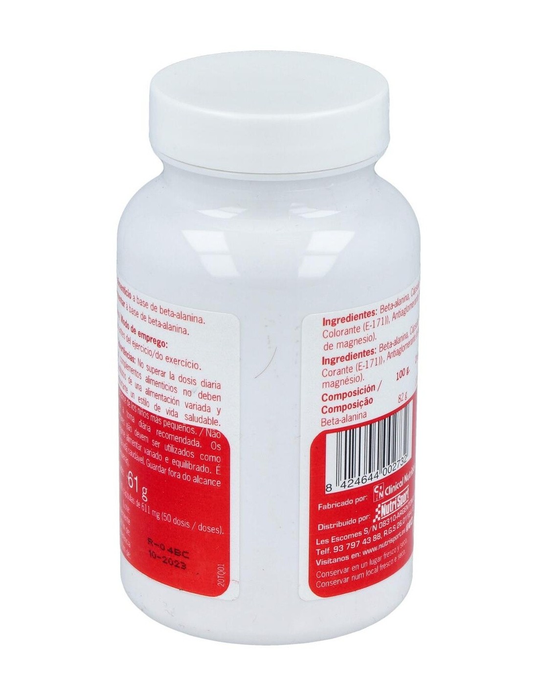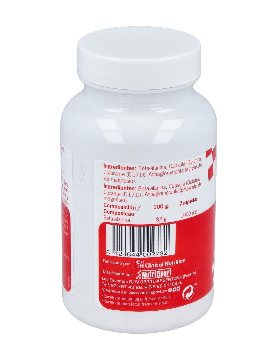Beta-Alanina 611mg (Gelatina, Colorante (E-171)), Antiaglomerante (Estearato de Magnesio vegetal)