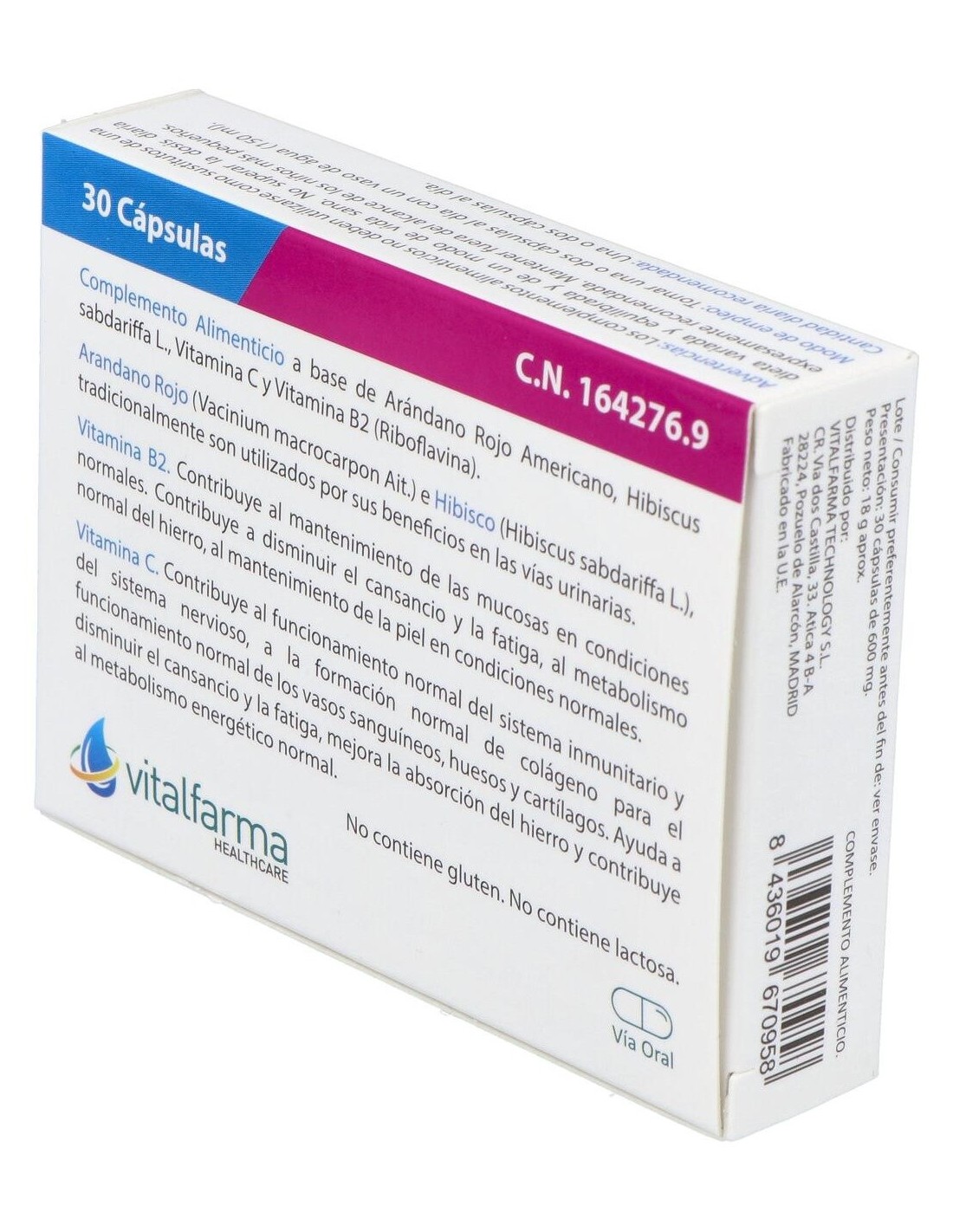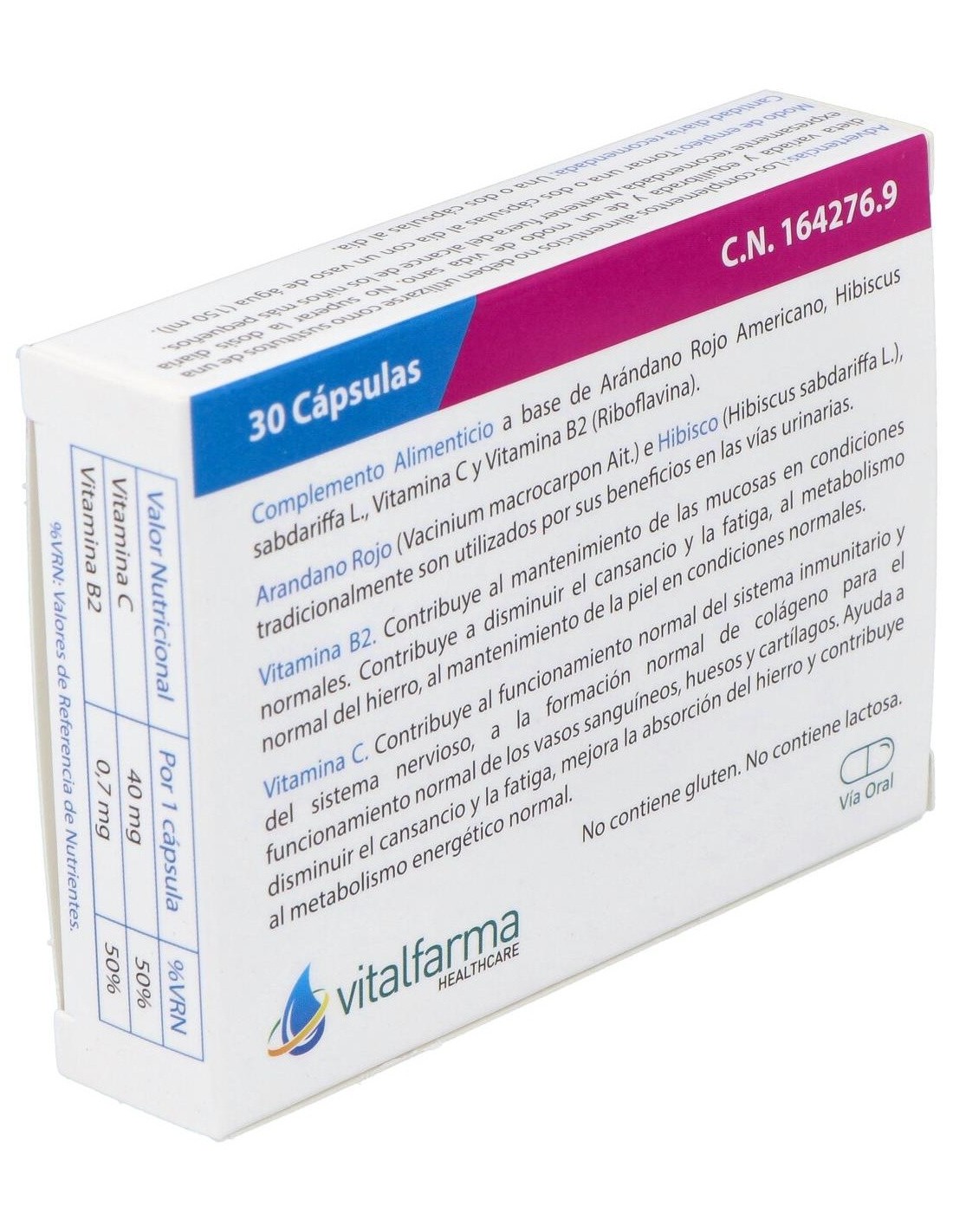 Complemento alimenticio con arándano rojo americano, mirtilo, hibiscus, ortiga y vitamina C que contribuye a la formación de colágeno para el mantenimiento normal de la piel y vasos sanguíneos. Protección de las células frente al daño oxidativo. Funcionamiento normal del sistema inmunitario.