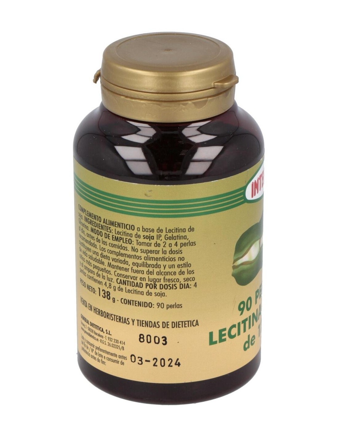 - Cada perla contiene 1200 mg de lecitina de soja, facilitando una ingesta controlada y uniforme.