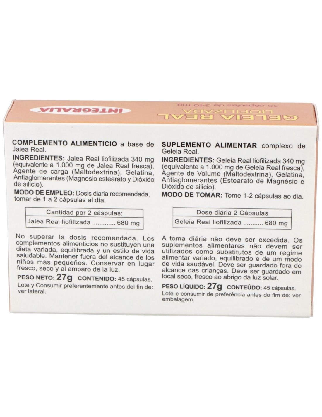 La Jalea Real Liofilizada 300Mg. 45Cap. de Integralia ofrece una forma práctica y confiable de incluir jalea real en la alimentación diaria, adaptándose a diferentes necesidades y estilos de vida.