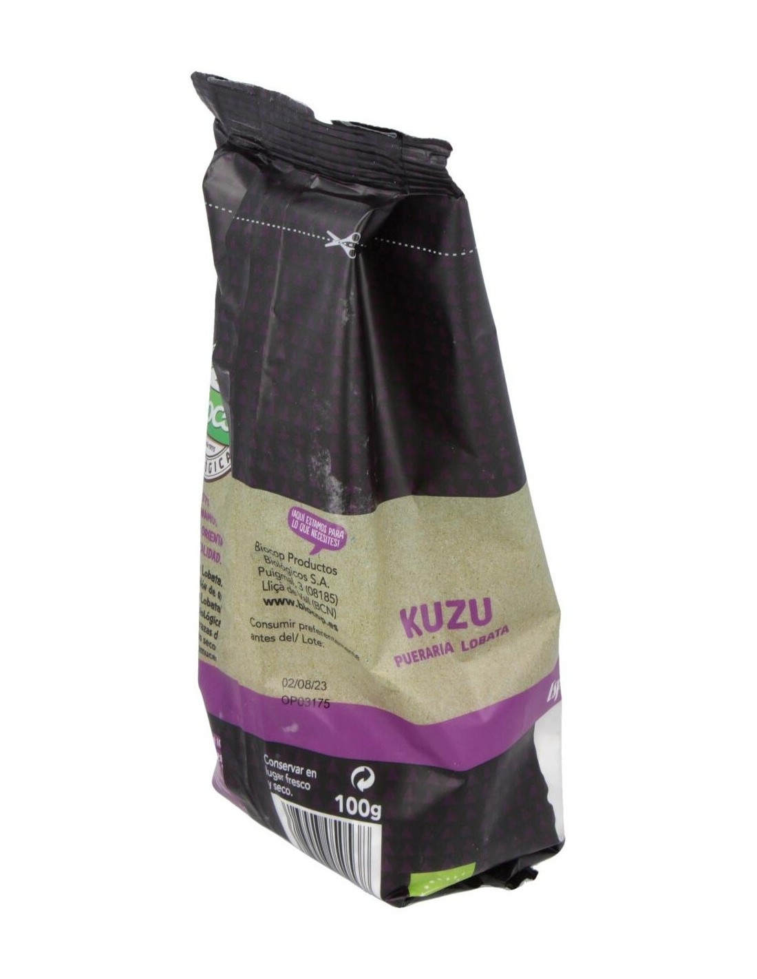 Modo de empleo:Disolver 1-2 cucharadas de postre de kuzu por taza de líquido frío. Añadirlo a sopas, cremas o natillas y cocinar a fuego suave hasta que se vuelva translúcido. Agitar lentamente y de forma constante.Presentación:Envase de 100 gramos.Recomendaciones y advertencias:Puede contener trazas de altramuces, cacahuetes, frutos secos con cáscara, gluten, sésamo, soja y derivados.