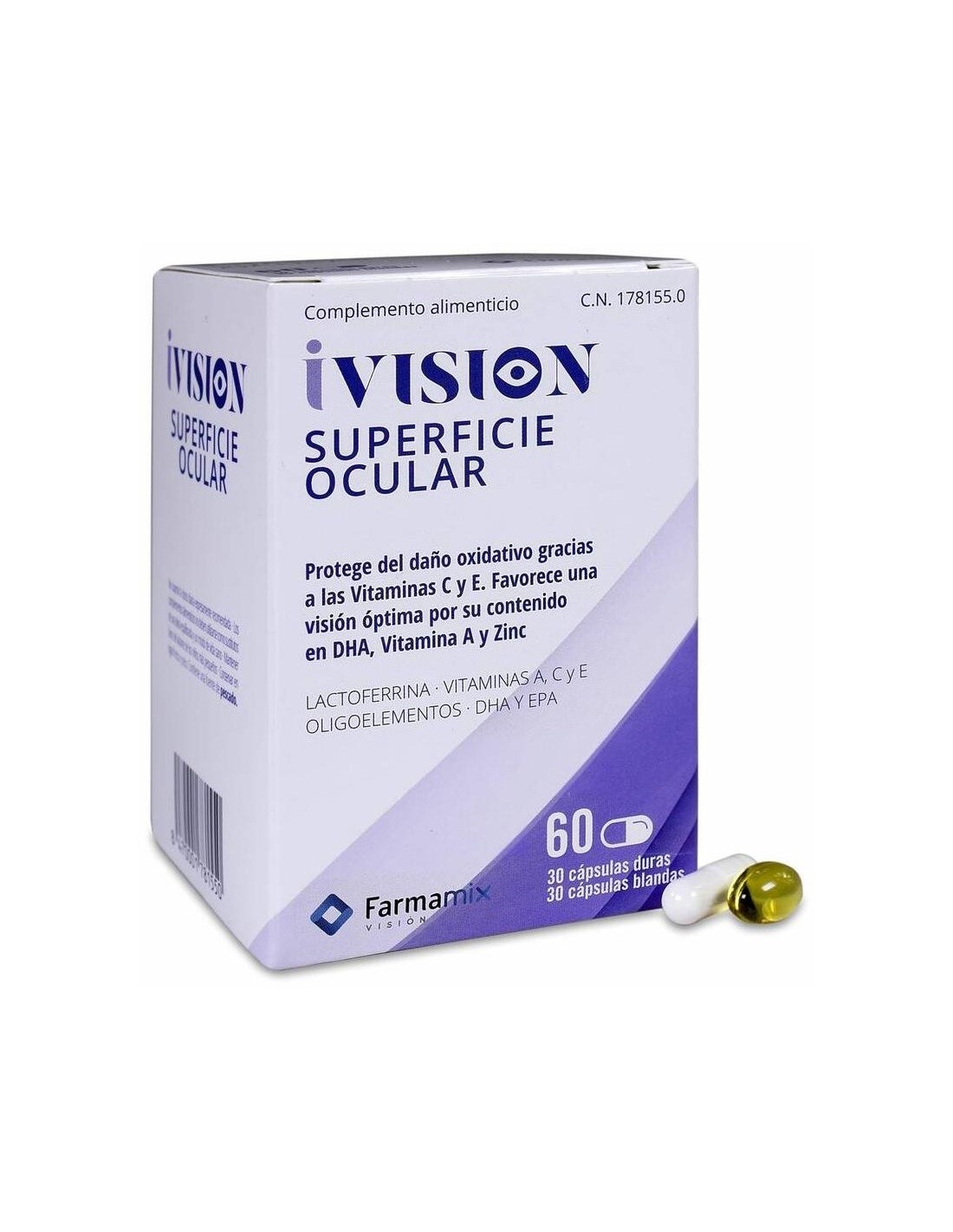 IVISIONComplemento alimenticio a base de ácidos grasos omega 3, vitaminas A, C y E, minerales y lactoferrina, que pueden ser de utilidad en caso de ojo seco, ya que el DHA y ciertas vitaminas y minerales de propiedades antioxidantes contribuyen a mantener la visión en condiciones normales. Además, la lactoferrina, componente de la lágrima natural, puede ser de utilidad en este producto.