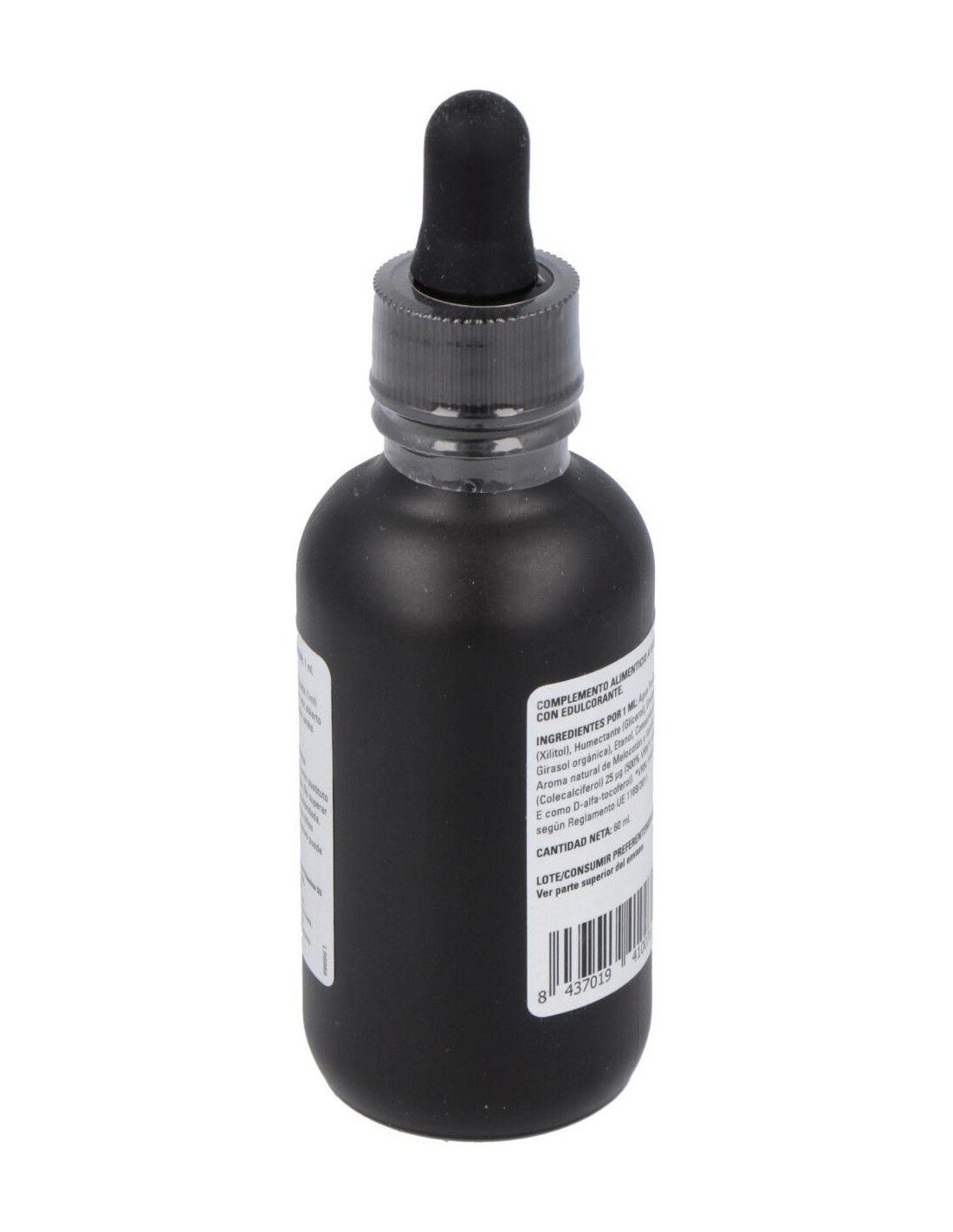 Agua purificada, edulcorante (xilitol), humectante (glicerol), emulgente (lecitina de girasol orgánica), etanol, conservante (sorbato potásico), aroma natural de melocotón y vainilla, vitamina D3 (colecalciferol), antioxidante (vitamina E como D-alfa-tocoferol).