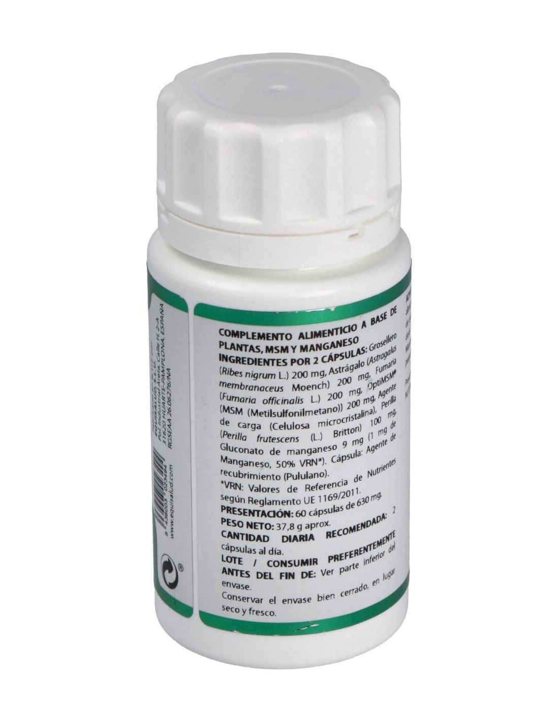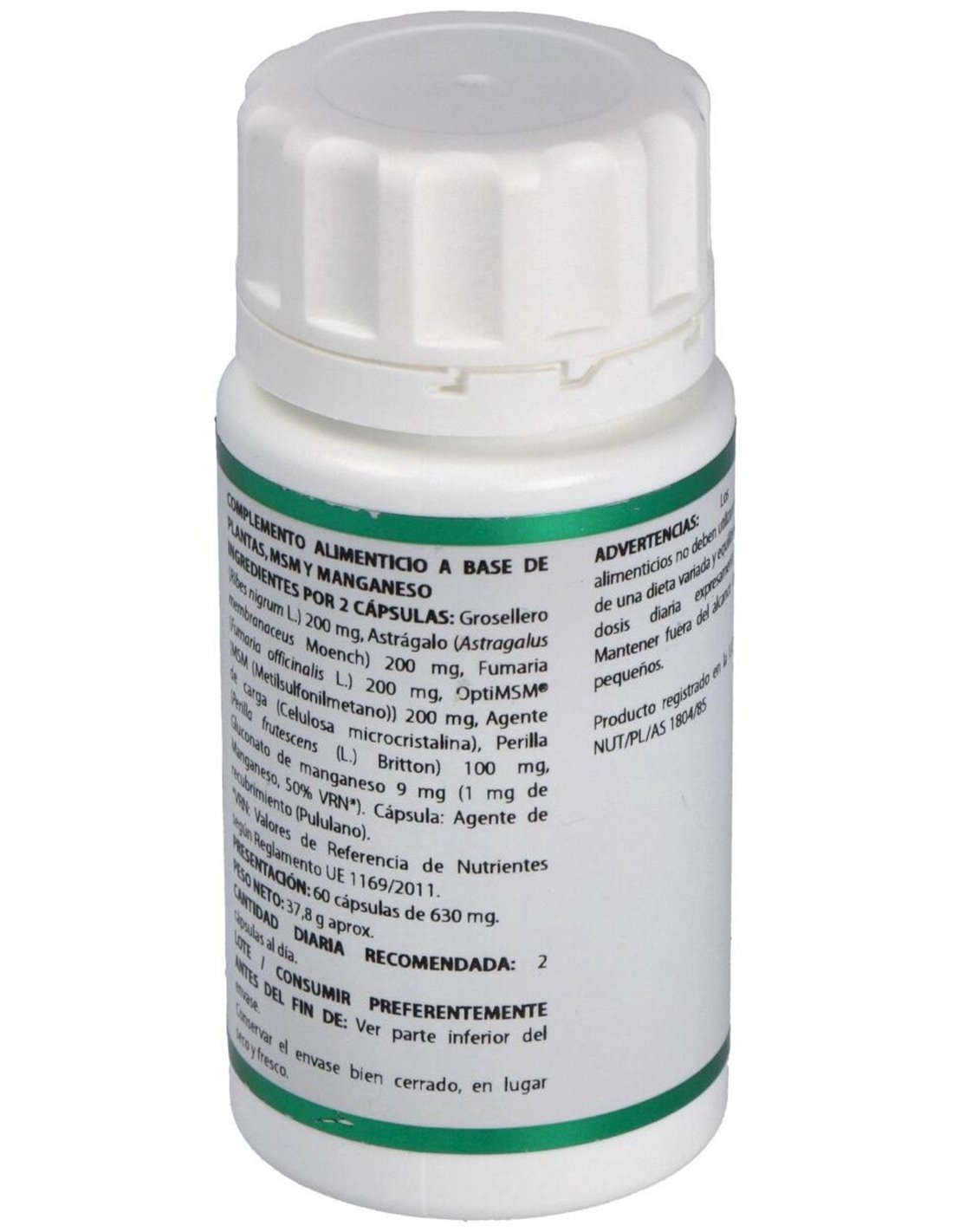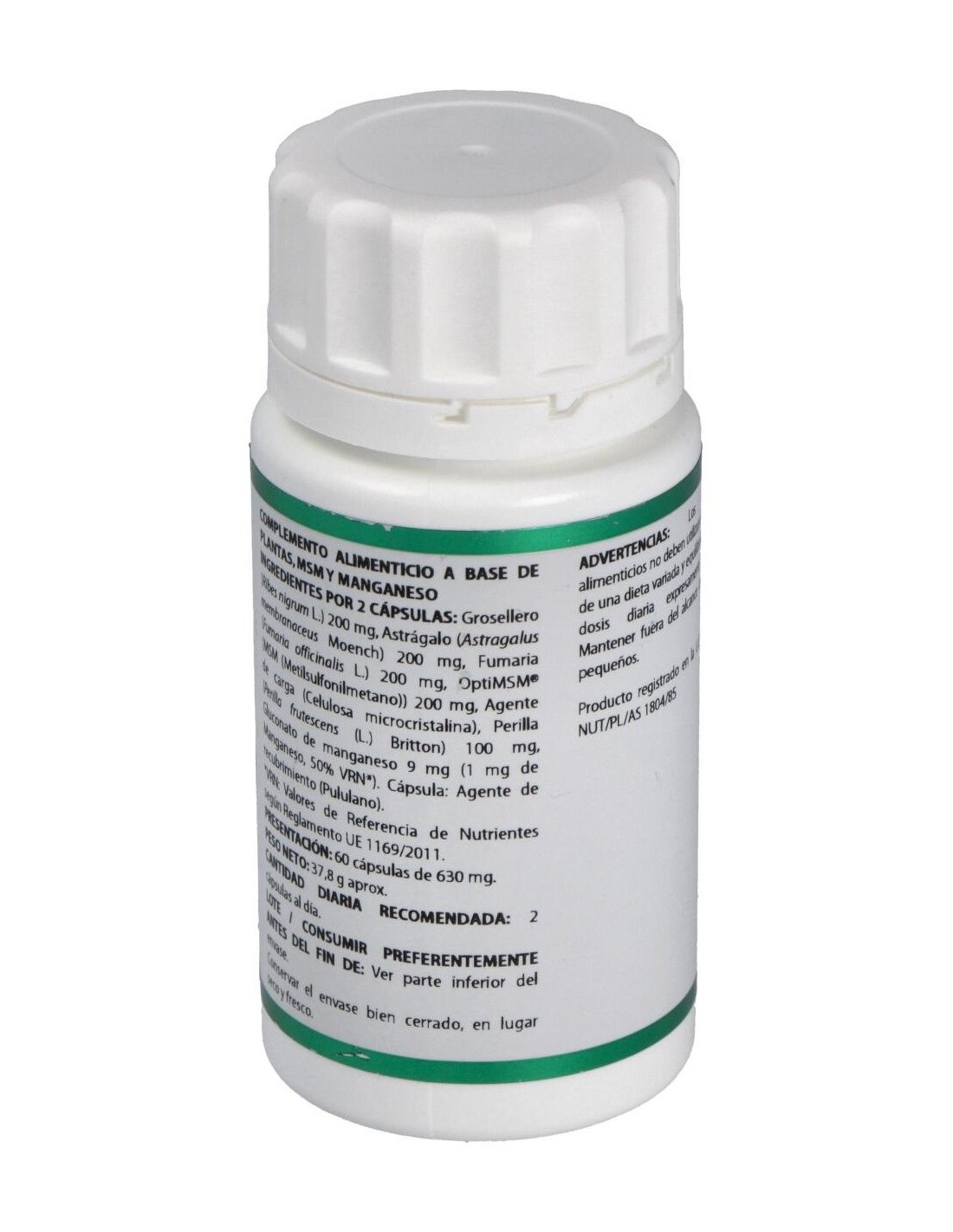 Modo de empleo:Tomar 2 cápsulas al día.Presentación:Envase de 60 cápsulas.