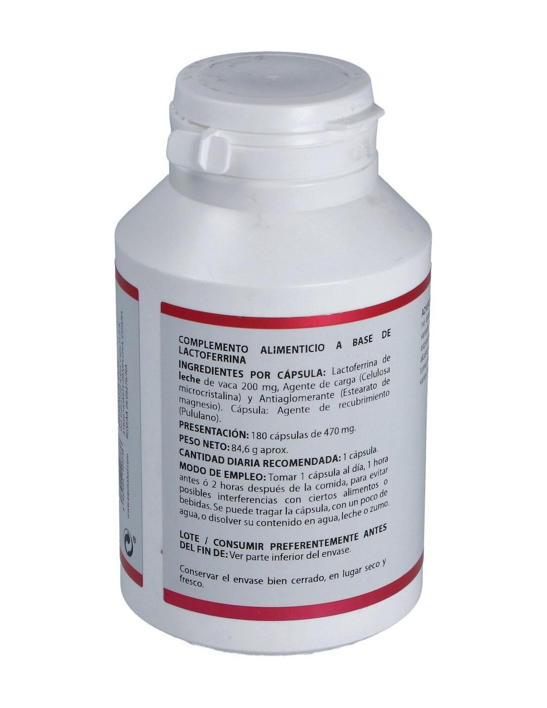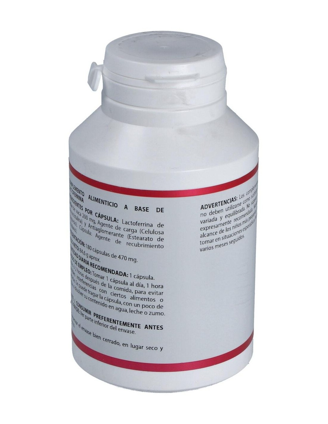 Lactoferrina* (proteína obtenida de leche bovina de calidad superior), 200 mg.