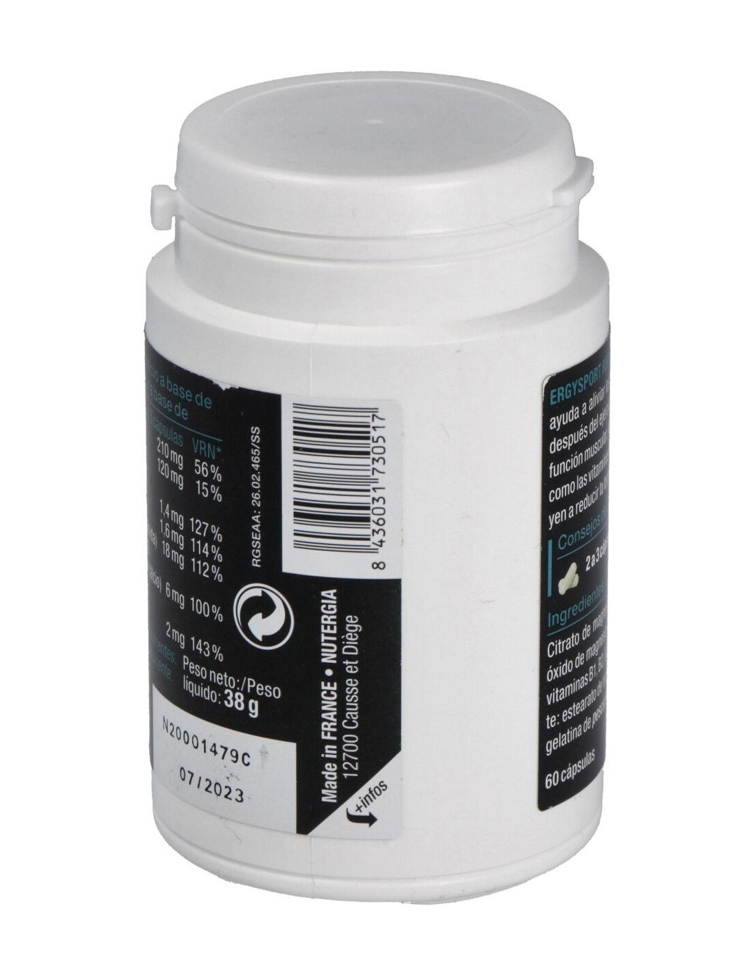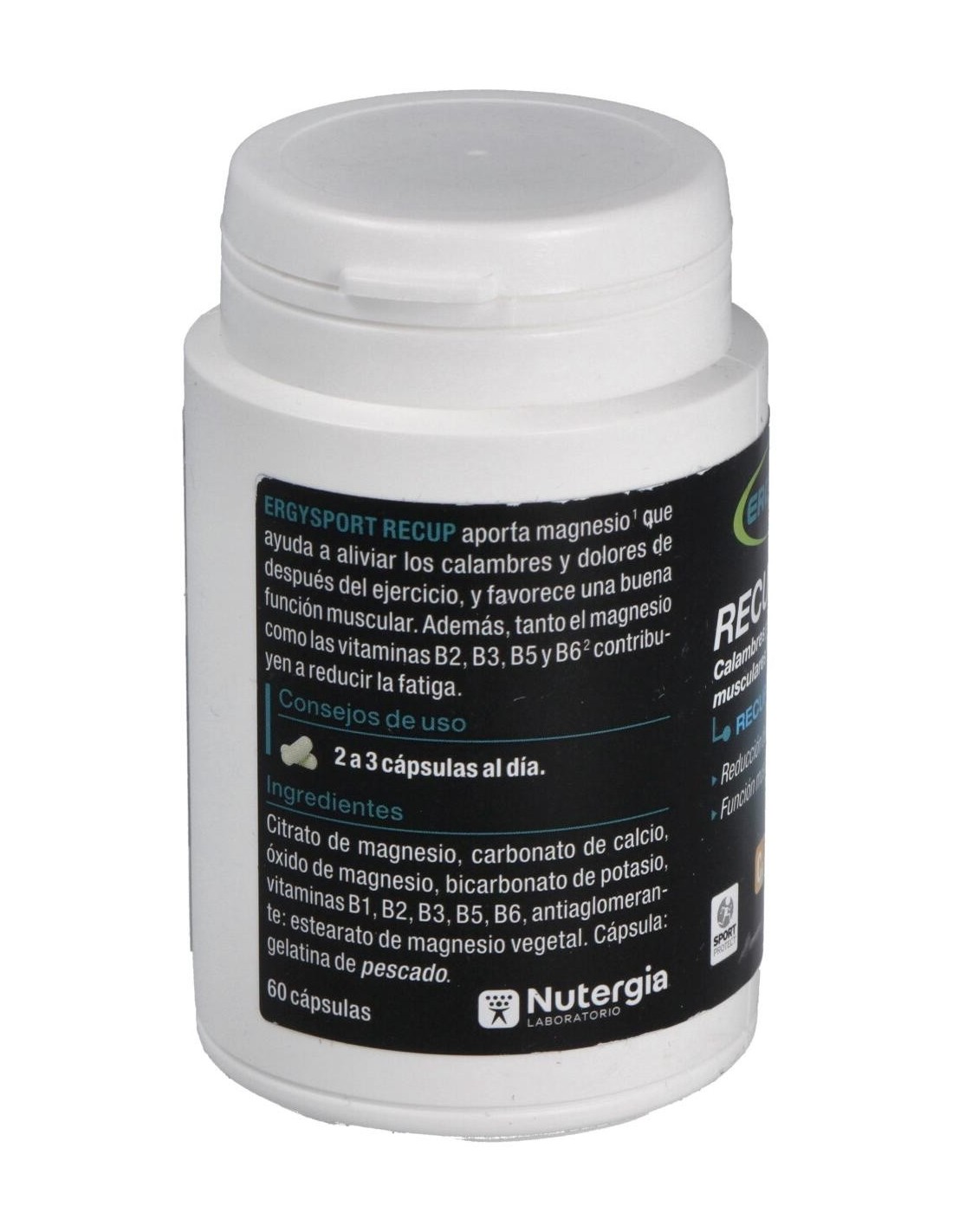 El Ergysport Recup 60Cap. de Nutergia es un complemento alimenticio para deportistas que contribuye a la recuperación muscular gracias a su fórmula equilibrada de aminoácidos y nutrientes esenciales.