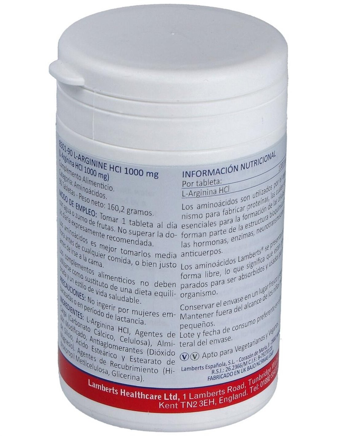 L-Arginina HCl 1000 mg 90 Tabs. de Lamberts