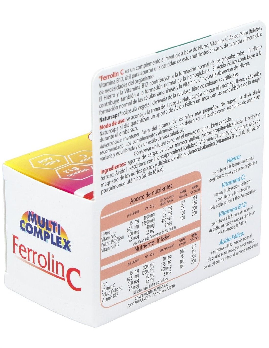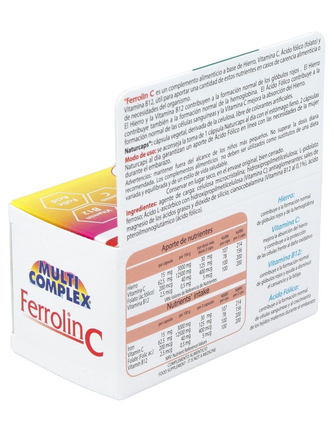 Vitamina B12: Contribuye al normal metabolismo energético y a la formación de los glóbulos rojos, ayuda a reducir el cansancio, contribuye a la salud del sistema nervioso.