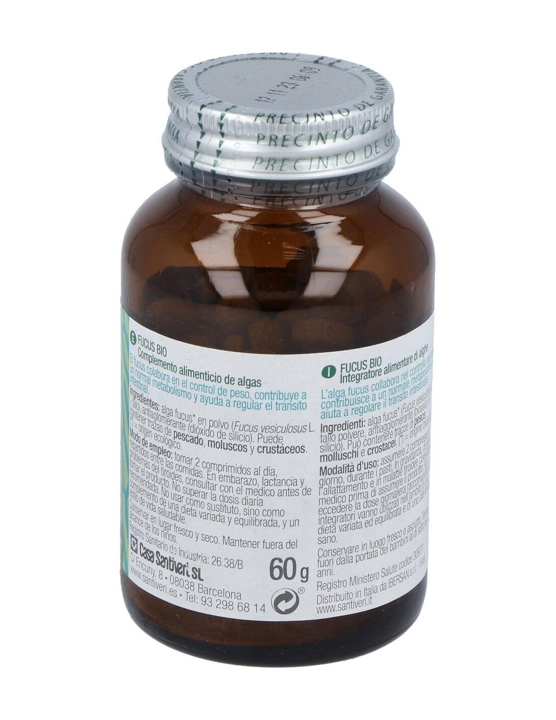 Complemento alimenticio rico en yodo y especialmente recomendado en dietas de adelgazamiento. Elaborado a partir de algas del Atlántico, las costas del Pacífico y el Mar del Norte. Ayuda a cuidar de la salud de la piel, estimula la tiroides, ayuda con la retención de líquidos, facilita la digestión, y contribuye a reducir el colesterol malo. Indicado en personas que se encuentren en un régimen o dieta de adelgazamiento. Puede contener trazas de pescado, crustáceos y moluscos.