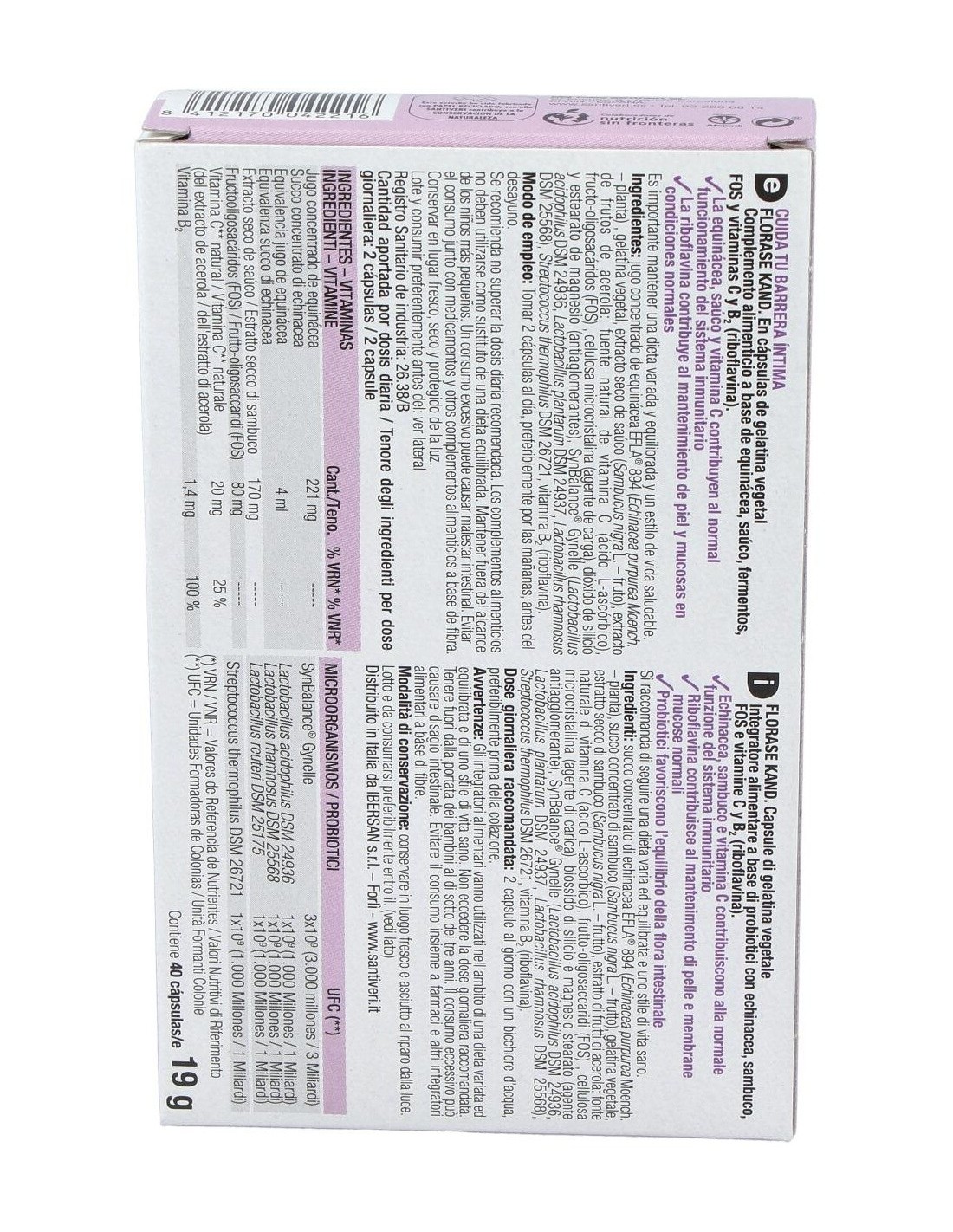 Jugo concentrado de equinácea EFLA® 894 (Echinacea purpurea Moench. - planta), gelatina vegetal, extracto seco de saúco (Sambucus nigra L. - fruto), extracto de frutos de acerola: fuente natural de vitamina C (ácido L-ascórbico), fructo-oligosacáridos (FOS), celulosa microcristalina (agente de carga), dióxido de silicio y estearato de magnesio (antiaglomerantes), SynBalance® Gynelle (Lactobacillus acidophilus DSM 24936, Lactobacillus plantarum DSM 24937, Lactobacillus rhamnosus DSM 25568), Streptococcus thermophilus DSM 26721, vitamina B2 (riboflavina).
