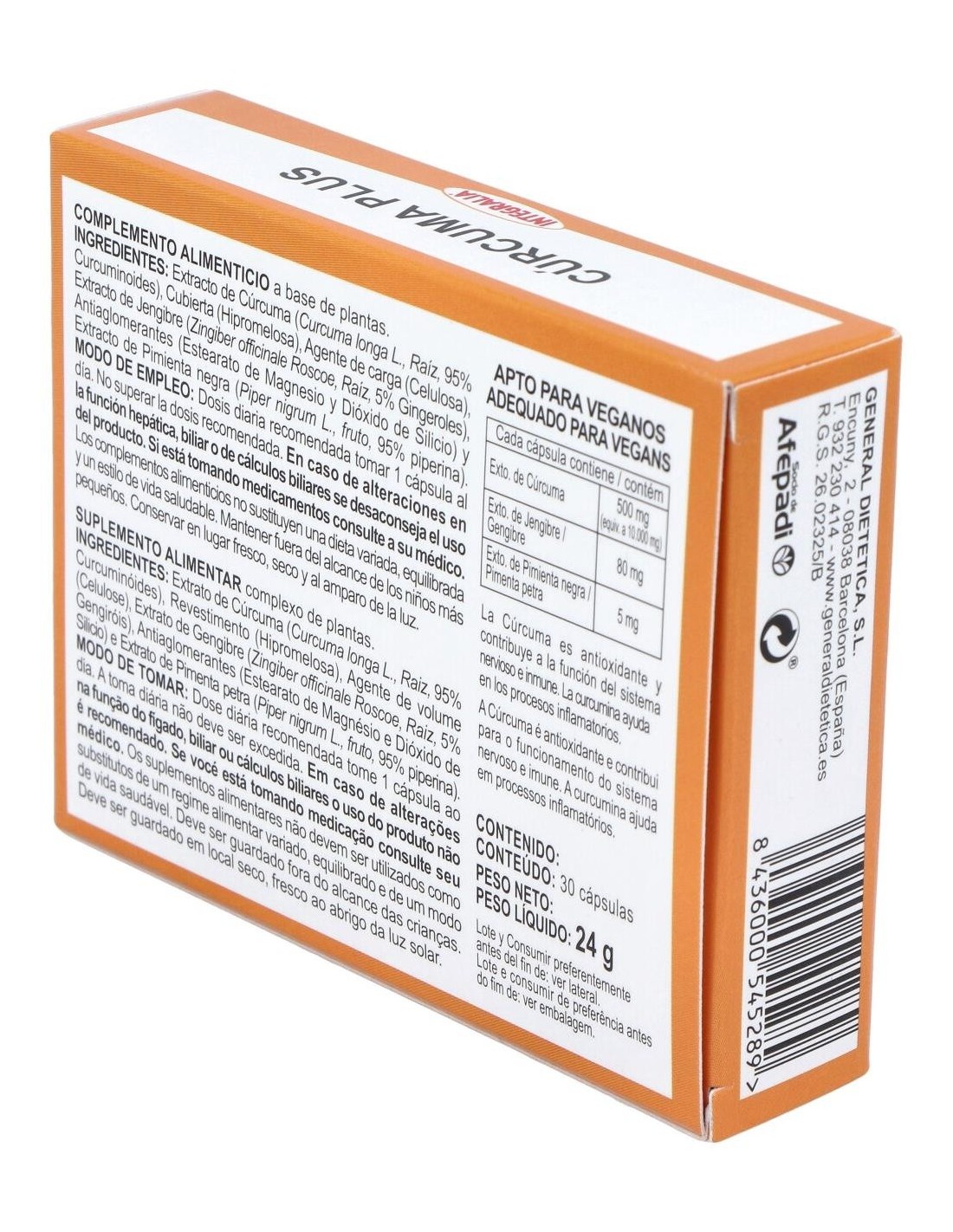 Por cápsula: Extracto de Jengibre 80 mg, Extracto de Cúrcuma 500 mg, Extracto de Pimienta Negra 5 mg.