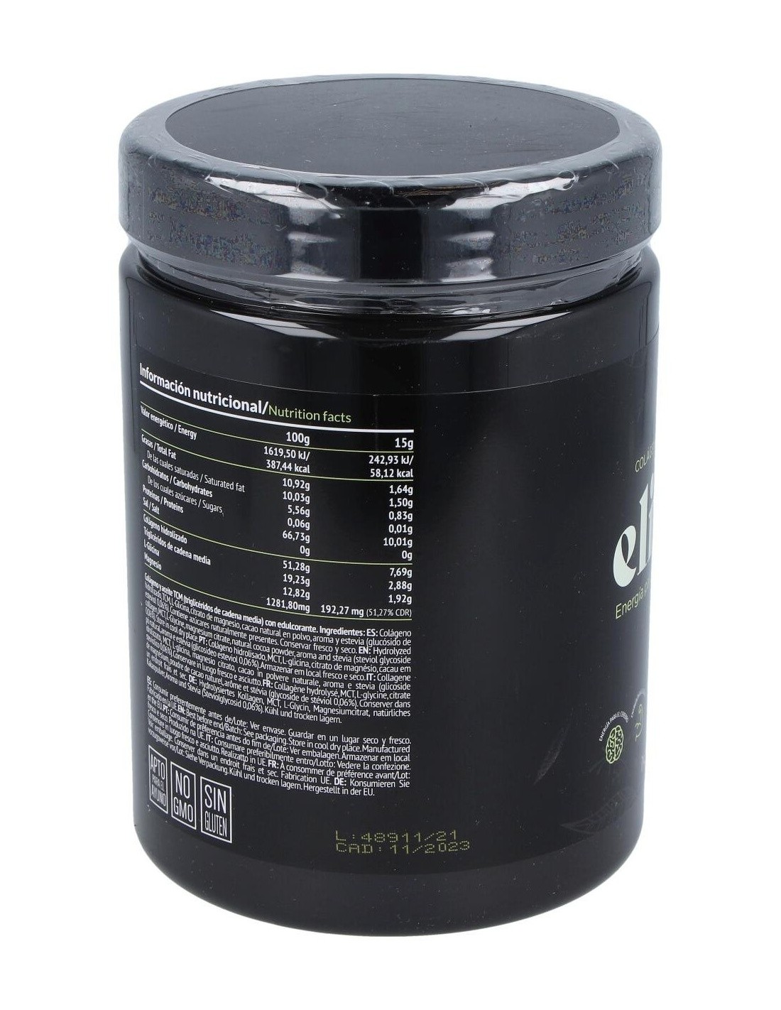 Elixir es un complemento alimenticio elaborado con colágeno en polvo, triglicéridos de cadena media (TCM o MCT por sus siglas en inglés) y glicina. Es