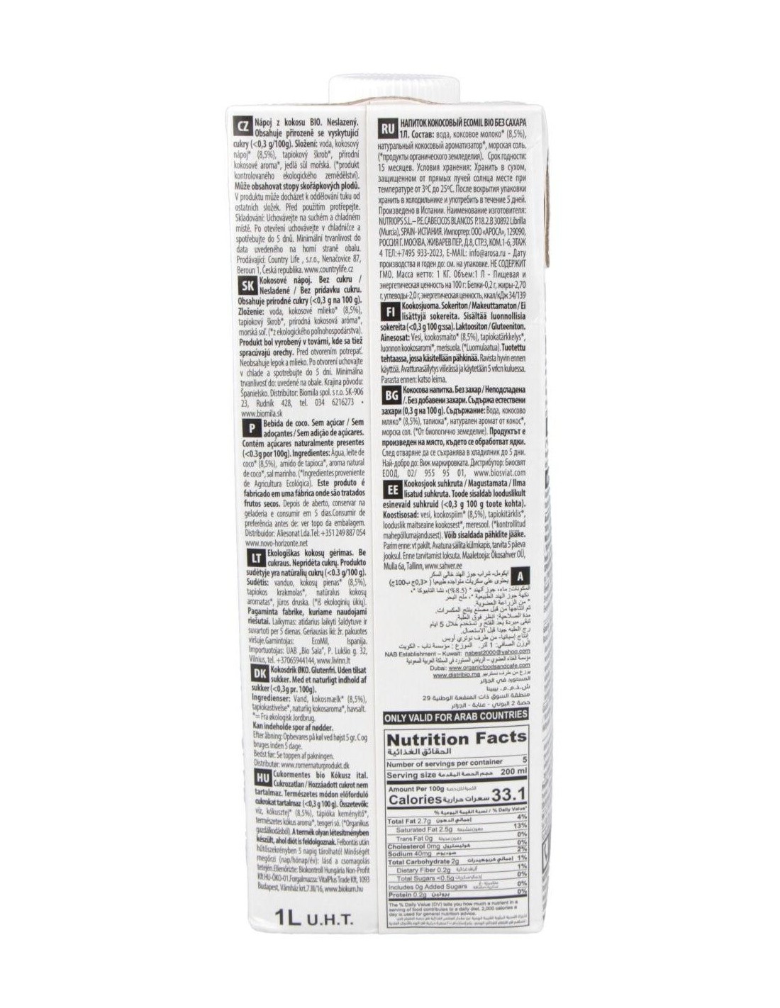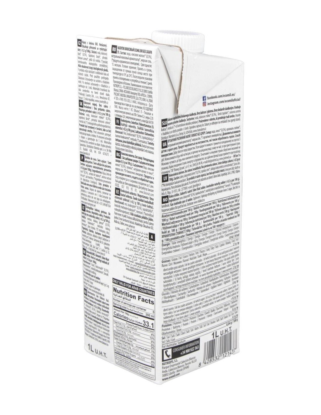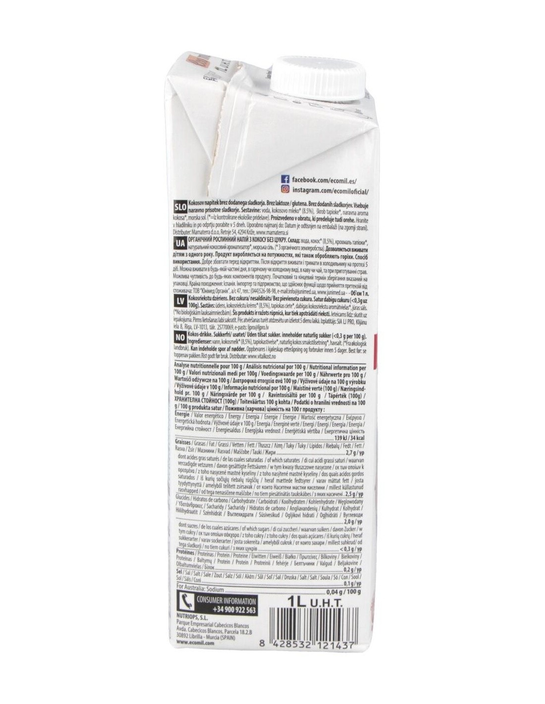 Ecomil Bebida De Coco Nature 1Lt 6Uds. Bio S/A de Almond