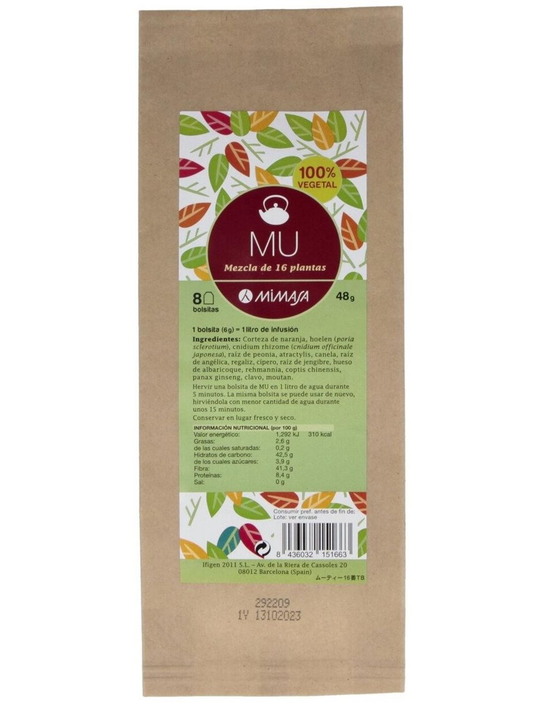 Combinación de 16 plantas yin y yang que interactúan y se complementan, de modo que el efecto resultante no se reduce a la suma aritmética de las propiedades de cada planta. 100% vegetal.