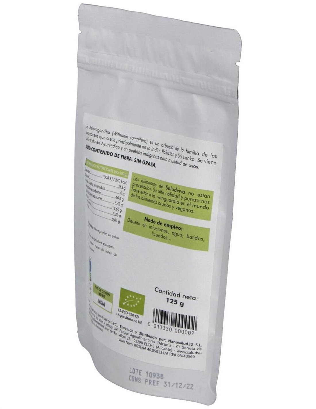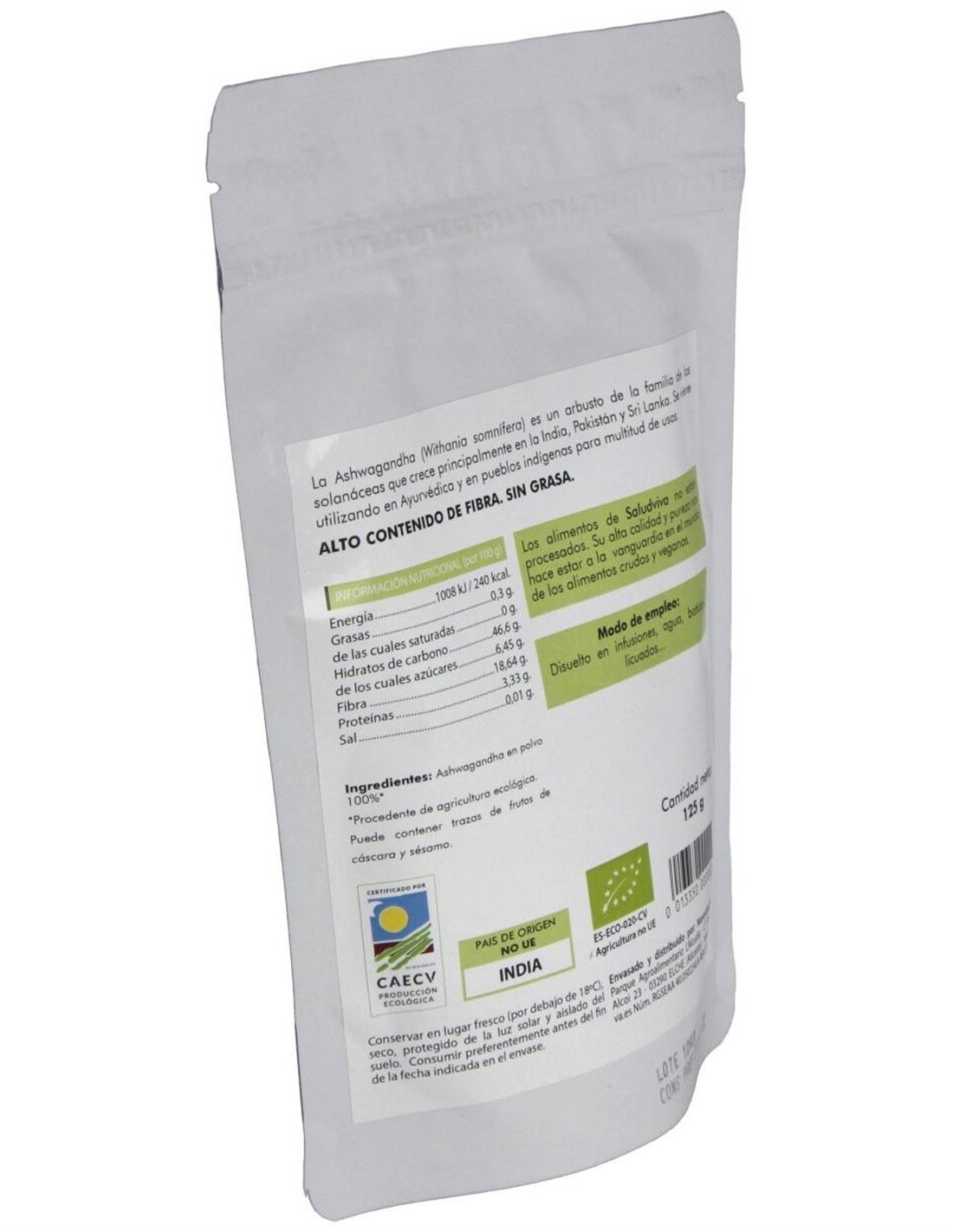 Ashwagandha En Polvo 125Gr. Bio Sg S/A Vegan de Salud Viva