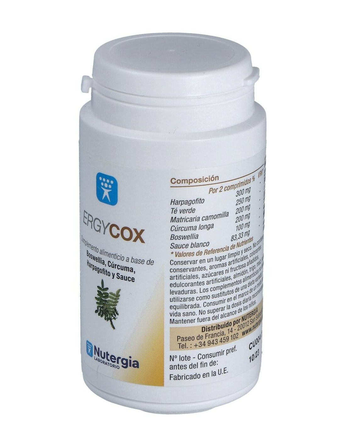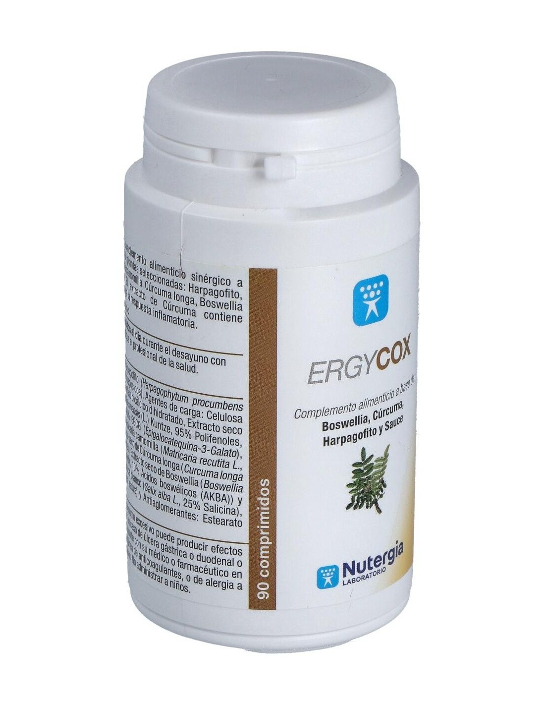 Ergycox 90Comp. de Nutergia es un complemento alimenticio para personas que buscan apoyar la salud articular, formulado con ingredientes que contribuyen al bienestar y movilidad gracias a su combinación específica de nutrientes.