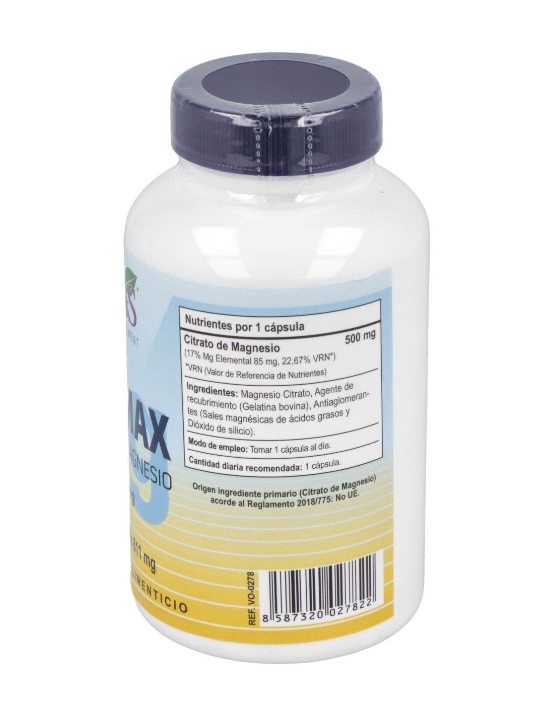 - Cada cápsula contiene 500 mg de citrato de magnesio, una forma que facilita su absorción en el organismo.