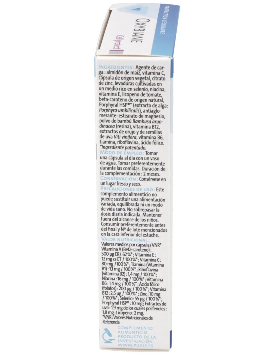 Elaborado con ingredientes cuidadosamente seleccionados, Oxybiane Cell Protect combina principios activos que actúan en sinergia para apoyar las funciones celulares. Su presentación en envase de 60 cápsulas permite un uso continuado y práctico.