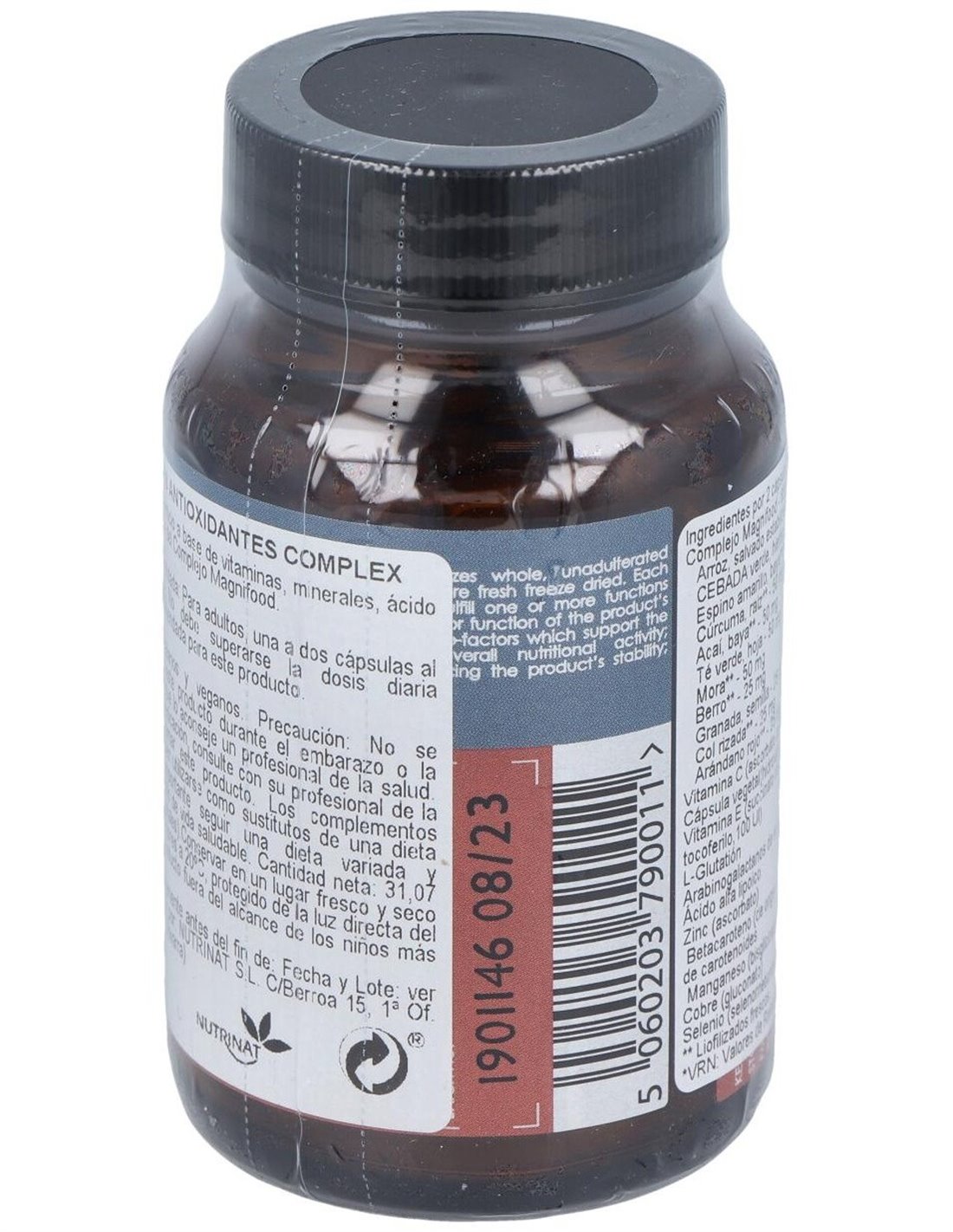 Complemento alimenticio a base de vitaminas, minerales, ácido alfa lipoico y plantas del Complejo Magnifood. Contribuye a la protección de las células frente al daño oxidativo. Apto para vegetarianos y veganos.