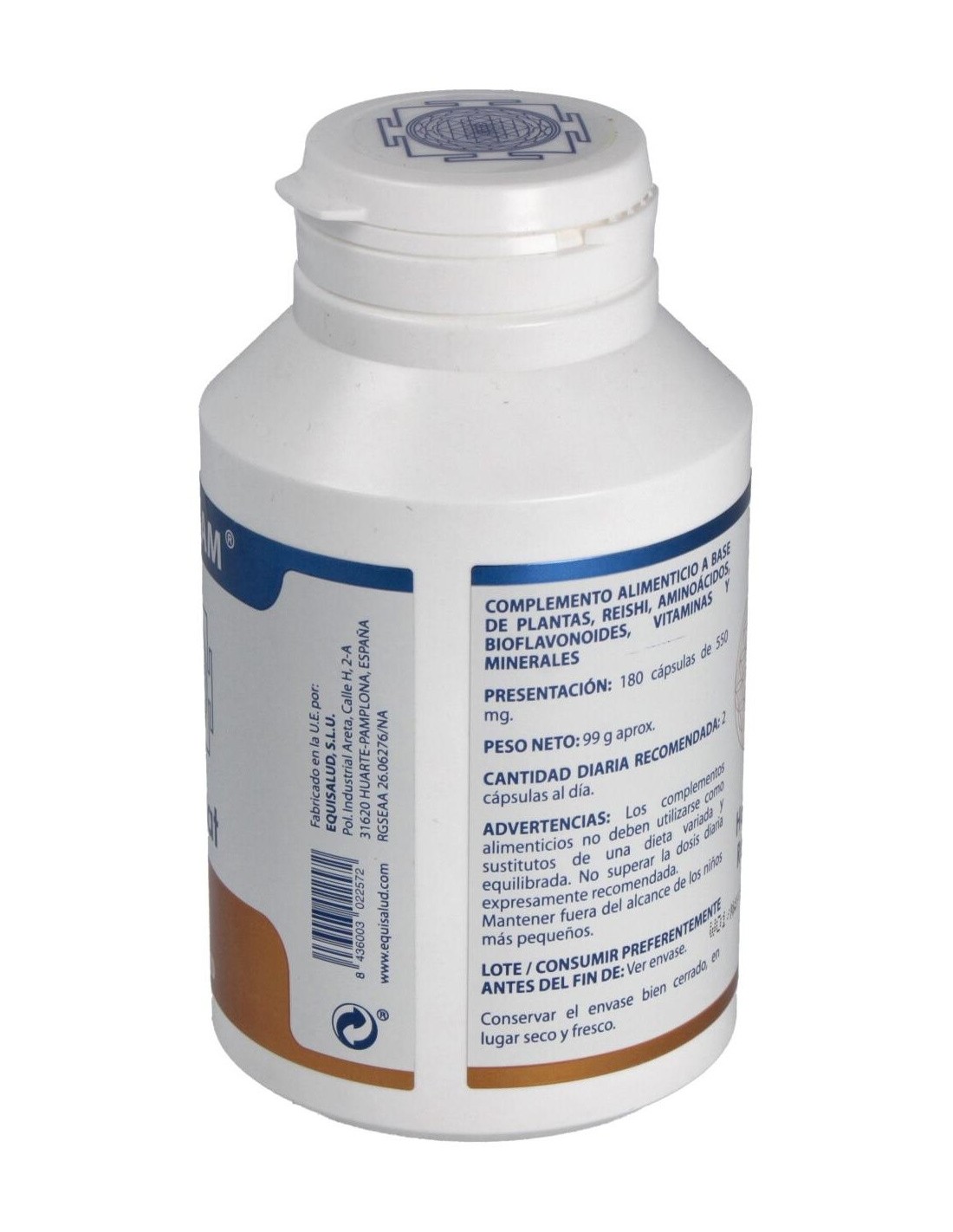 CURCUMA, TÉ VERDE, REISHI, CALÉNDULA, FUCUS, CELIDONIA, L-SERINA, L-ARGININA, QUERCETINA, L-METIONINA, VITAMINA B2, L-GLUTATION, VITAMINA B12.