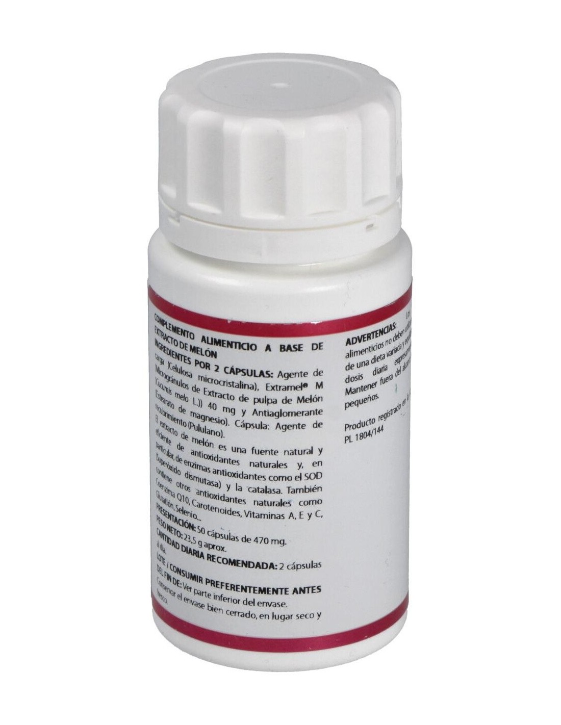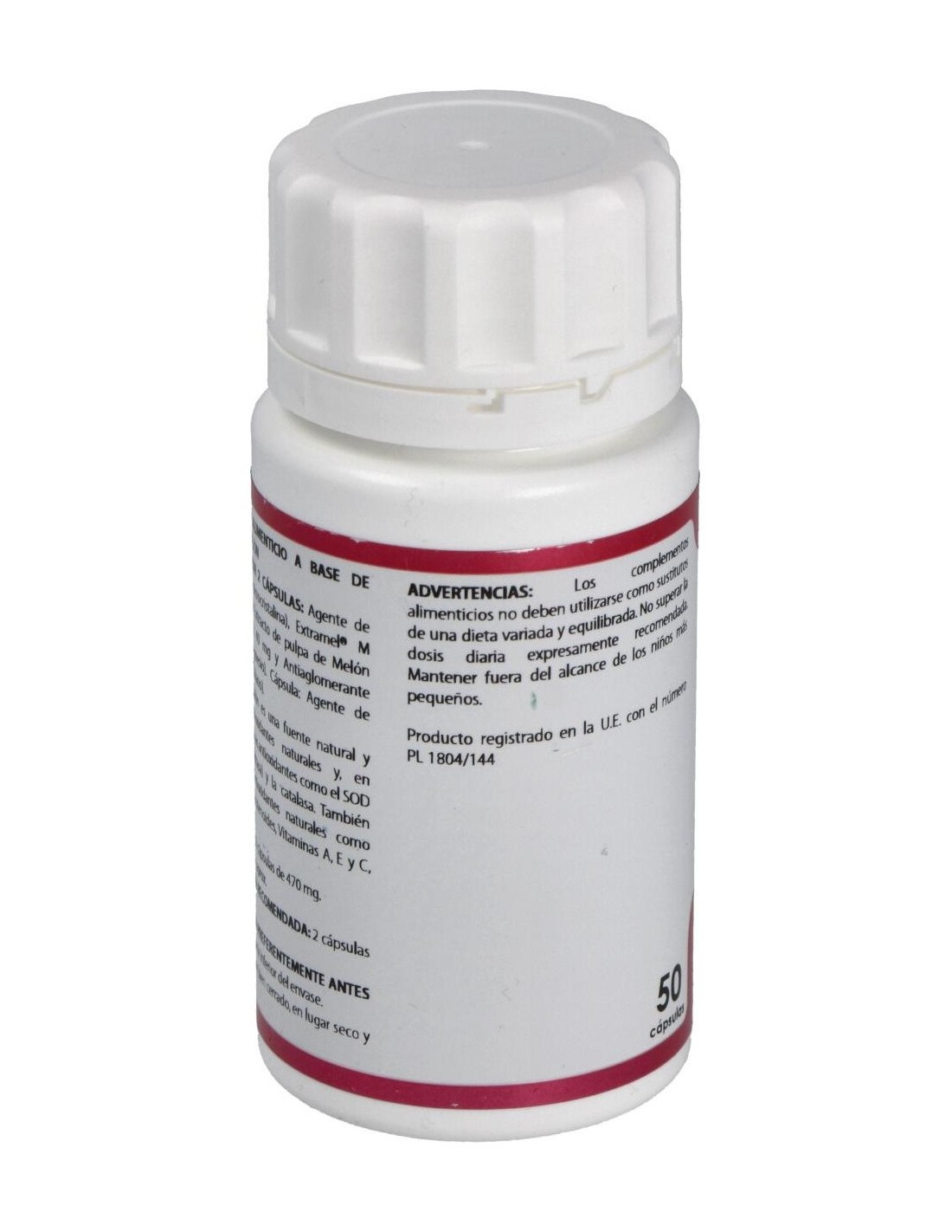 Es uno de los antioxidantes más importantes del organismo, usado en muchas afecciones y como preventivo del envejecimiento celular, especialmente en la artritis, afecciones degenerativas de los ojos, daños producidos por la radiacion UV, quemaduras, arrugas y estrés. Siguiendo el principio de que los productos orgánicos tienen mejor disponibilidad y son más eficaces que las sustancias puras, recurrimos a una fuente especialmente rica en SOD, un gran antioxidante. Se obtiene de una variedad de melón muy rica en esta enzima. A partir de su jugo concentrado se obtiene un extracto seco, que aparte de contener una alta dosis de SOD, muy efectiva, contiene también otros antioxidantes. El SOD va está presente en este producto en tres formas, unida al hierro, al manganeso y también al zinc-cobre. Cada una juega un papel diferente en mantener las células sanas, así como el Zn-Cu protege el citoplasma celular, el Mn protege la mitocondria del daño de los radicales libres. Acciones: Su acción antioxidante es indiscutible y ha sido demostrada científicamente. Produce una reducción de sustancias proinflamatorias y de citoquinas, siendo útil en casos como la artritis reumatoidea y otras inflamaciones. Se ha visto que no permite la actuación de células dañadas o apoptóticas. Protege frente al daño producido por las radiaciones ultravioletas. Protección frente al estrés. Protección frente a alérgenos. Protege el metabolismo celular. Composición:Extramel® (compuesto registrado a base de SOD).Modo de empleo:Tomar 2 cápsulas al día.Presentación:Envase de 50 cápsulas.