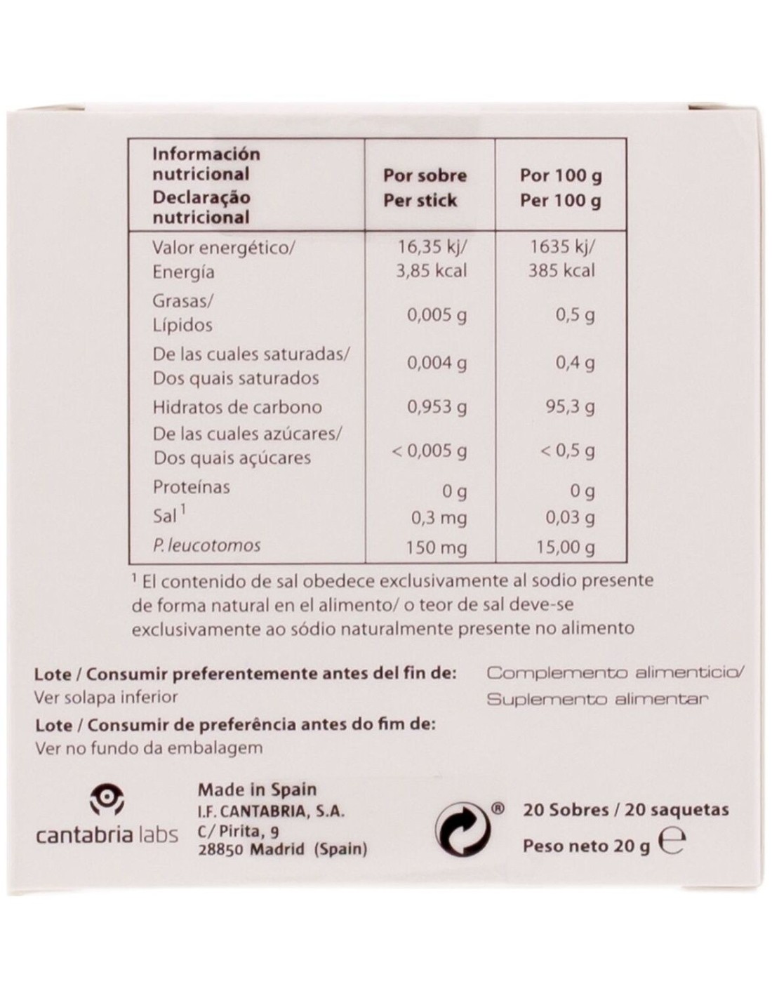 Los complementos alimenticios no deben usarse como sustitutos de una dieta equilibrada ni de un modo de vida sano.