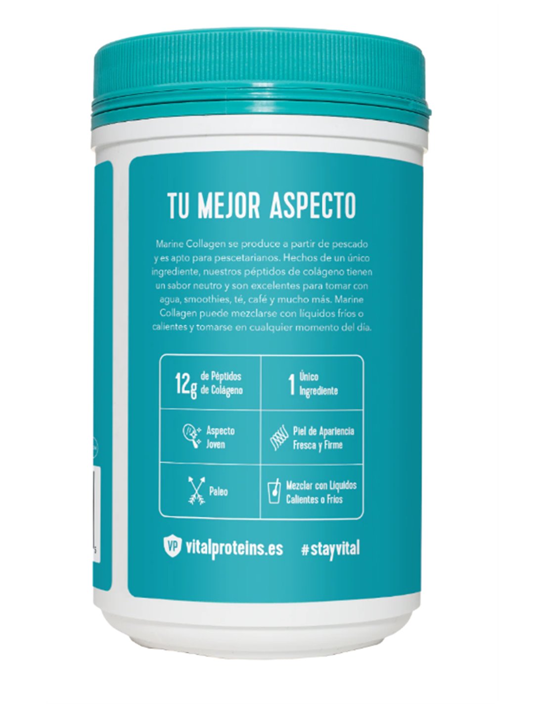 Vital Proteins Marine Collagen 221g es un complemento alimenticio en forma de polvos solubles que aportan 12 gramos de colágeno hidrolizado por dosis.
